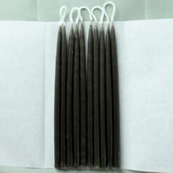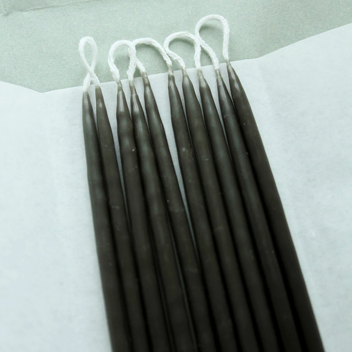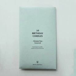 Set of ten birthday candles by Wax Atelier. A bundle of 10 long handmade candles made with white beeswax – a beautiful addition to a cake. Burn time: approx 45 minutes per candle.