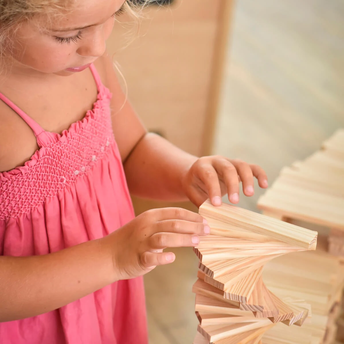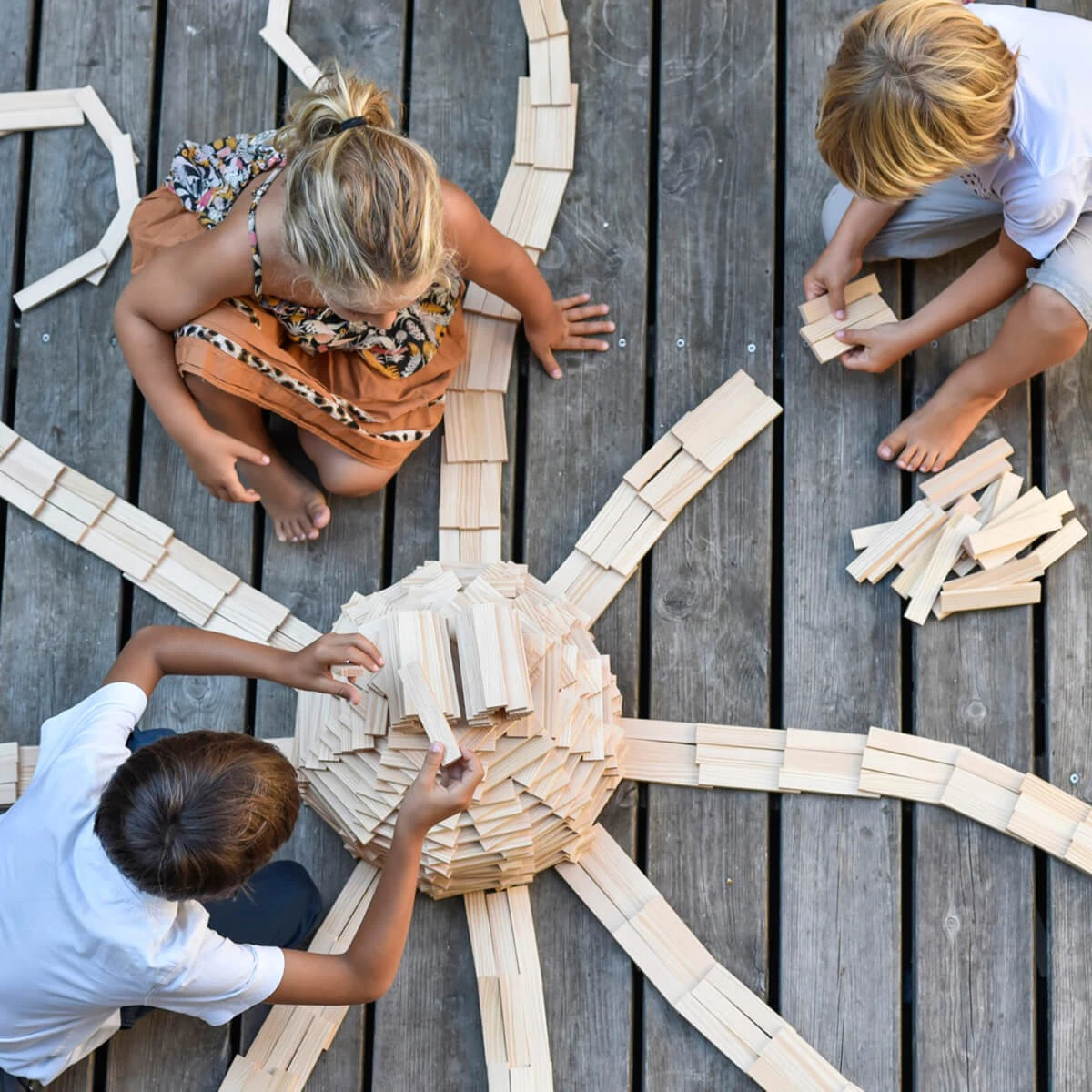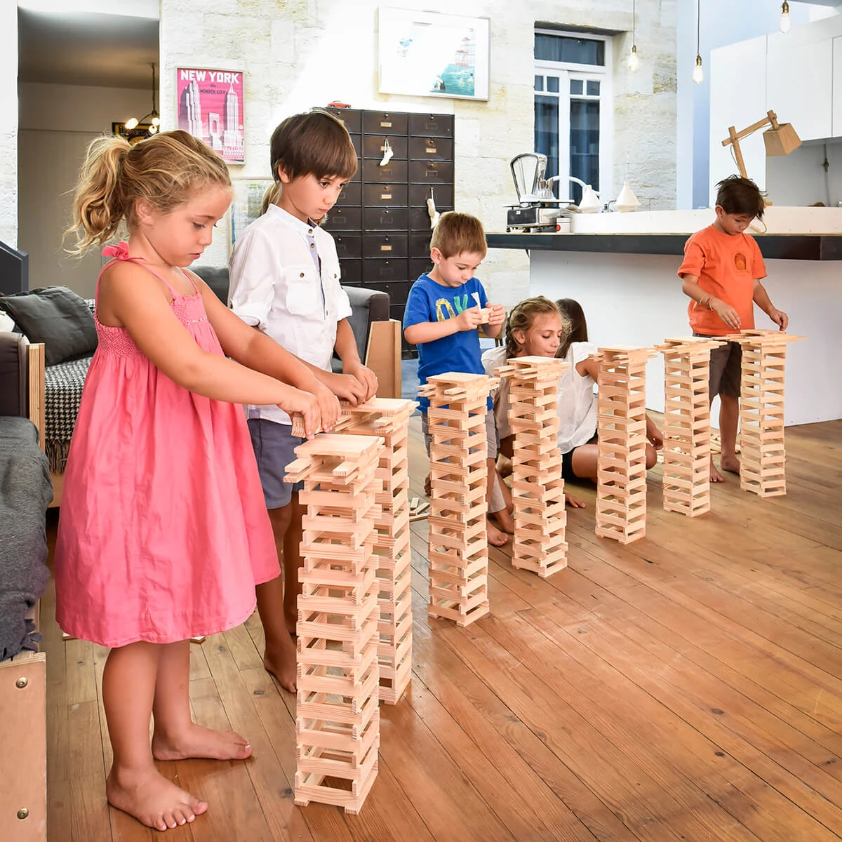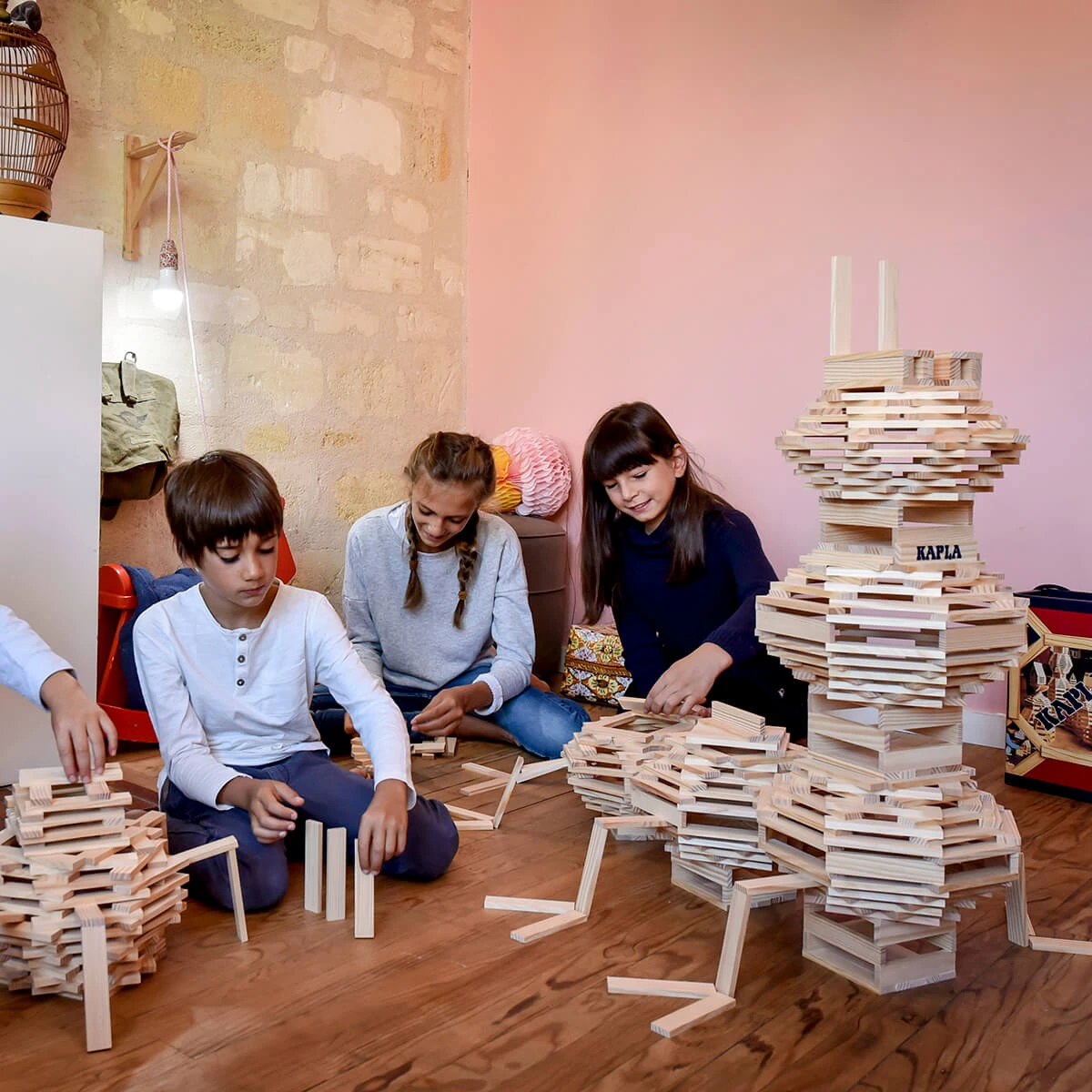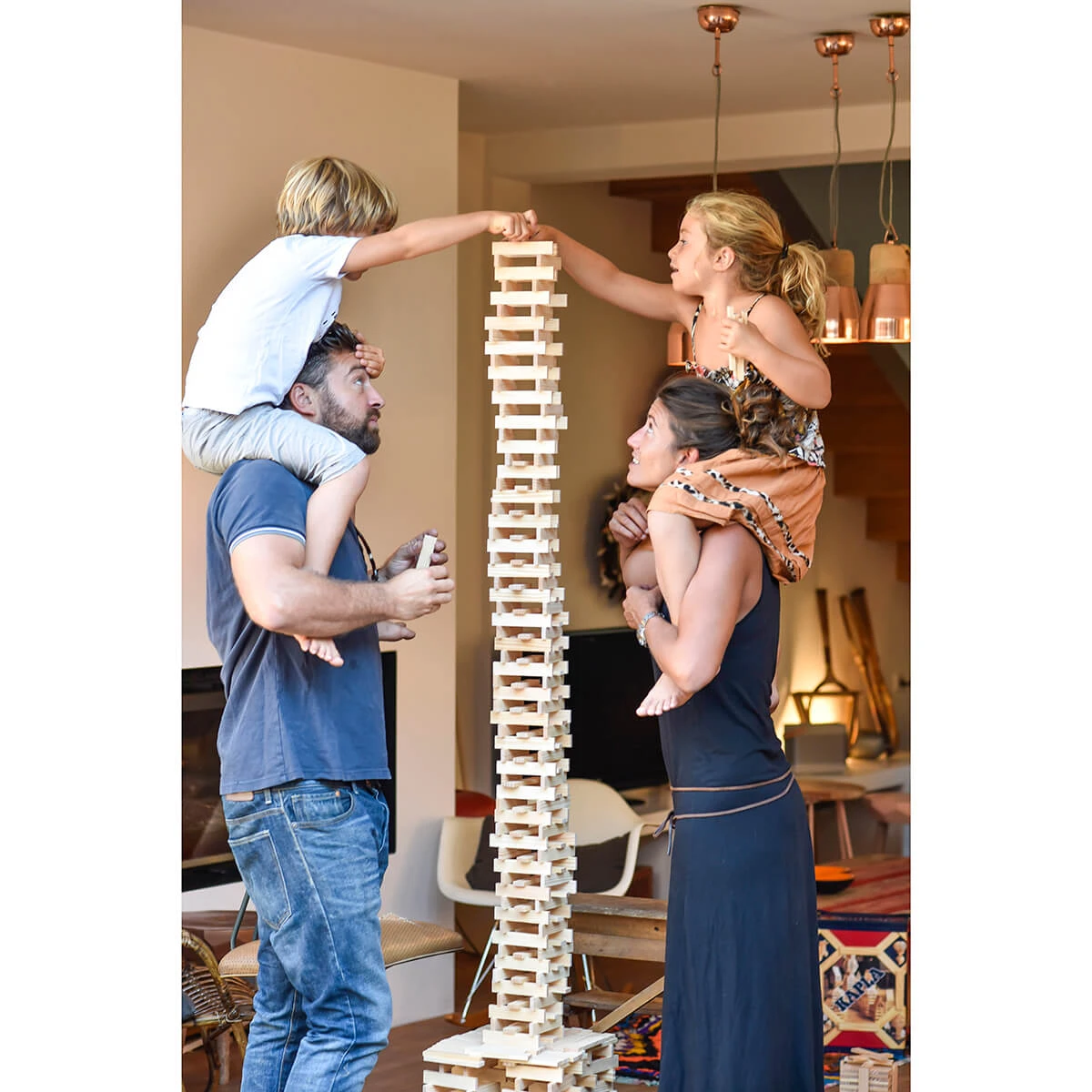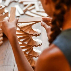 KAPLA is a natural construction game made up of identical pine planks. Due to their unique size, in the ratio of 1:3:5, KAPLA planks are an innovative building block, ideal for creating a wide variety of structures.  No glue, no screws, no clips. Each plank is simply placed on top of another: gravity and balance alone hold the planks in place.  KAPLA introduces children to a world where art and science coexist beautifully. The game allows children to build, create and experiment using their own imagination. It stimulates creativity, encourages logical thinking, dexterity and concentration. KAPLA is not just a box of bricks, it is a bridge, a house, a chair, a chance to succeed, a chance to fail and then a chance to try again. Â