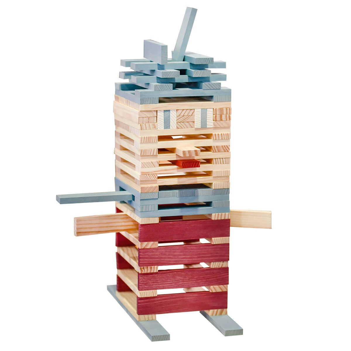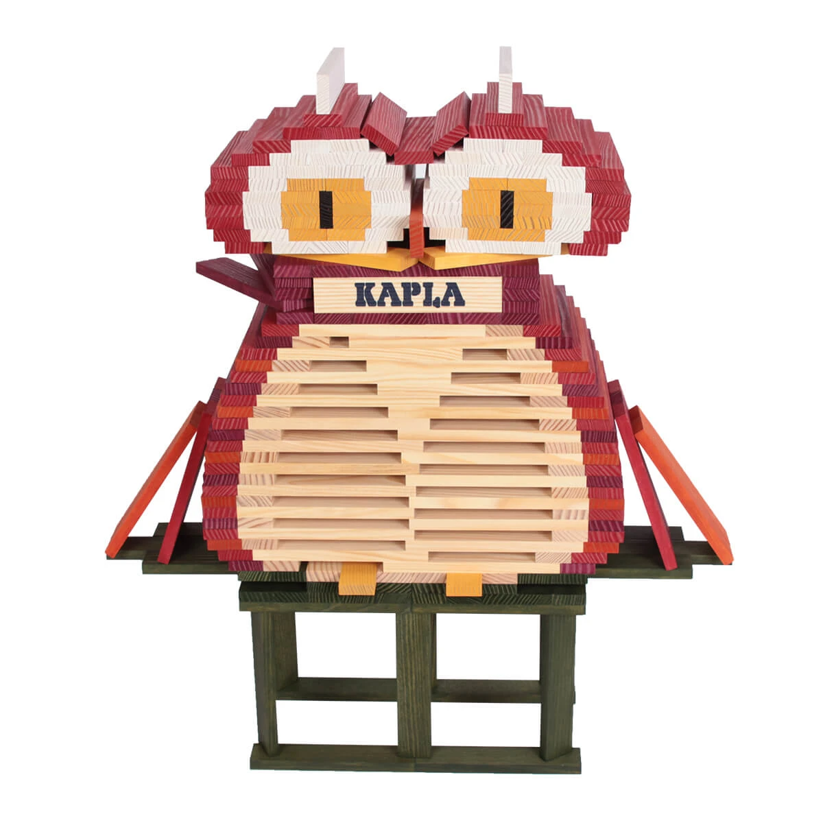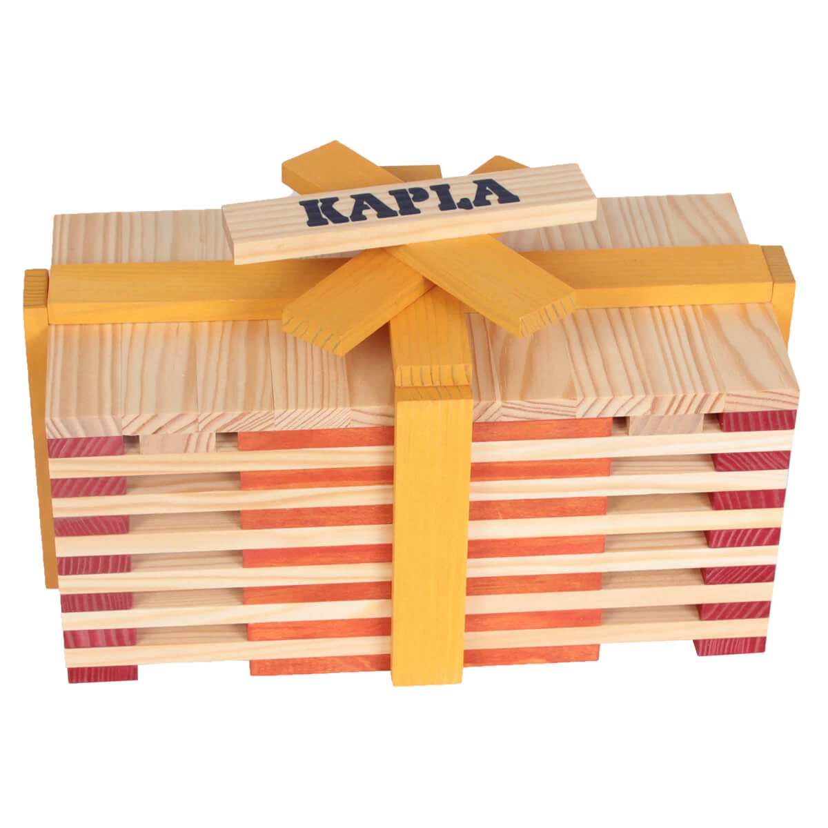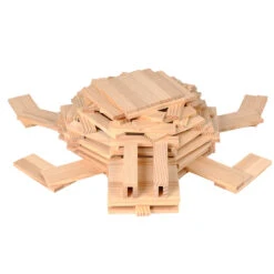 The KAPLA planks are 100% untreated wood sourced from renewable pine forests in Les Landes, France. Due to the purity and quality of the pine wood used, Kapla planks will last for many years. A high precision manufacturing process ensures the exact same size, the correct ratio and the perfectly balanced and smooth quality of each KAPLA plank. This results in stable constructions and counter lever potential. The planks are then coloured with natural food colourings to ensure their safety.