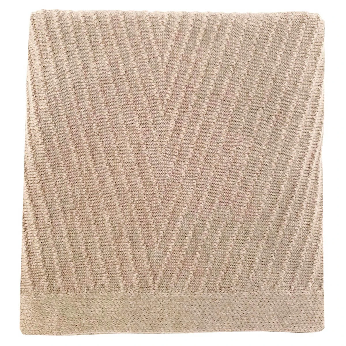 Akira blanket in sand by Hvid. A gorgeous, thick blanket with subtle diagonal lines that create a harlequin pattern in the middle of the throw.