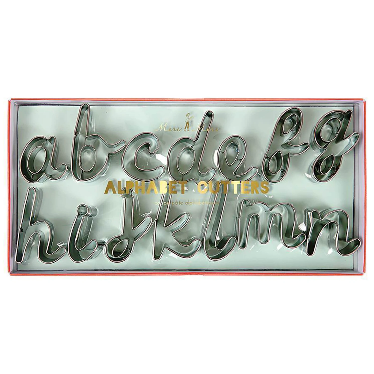 Alphabet cookie cutters by Meri Meri. Create delicious messages, names or simply celebrate the beauty of letters with these brilliant alphabet cookie cutters. Made from stainless steel. Pack of 27.