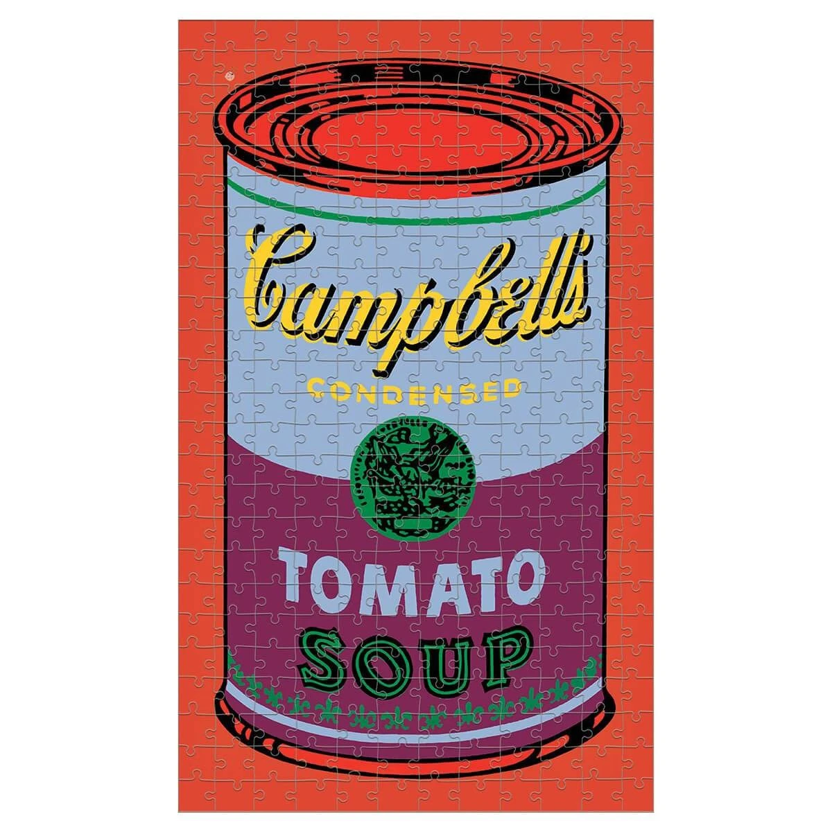 For puzzlers and Warhol fans of all ages. The jigsaw pieces are made of 90% recycled paper and come packaged in a sturdy stackable canister. Tomato was the first of Andy Warhol’s iconic Pop Art Campbell’s soup can paintings.