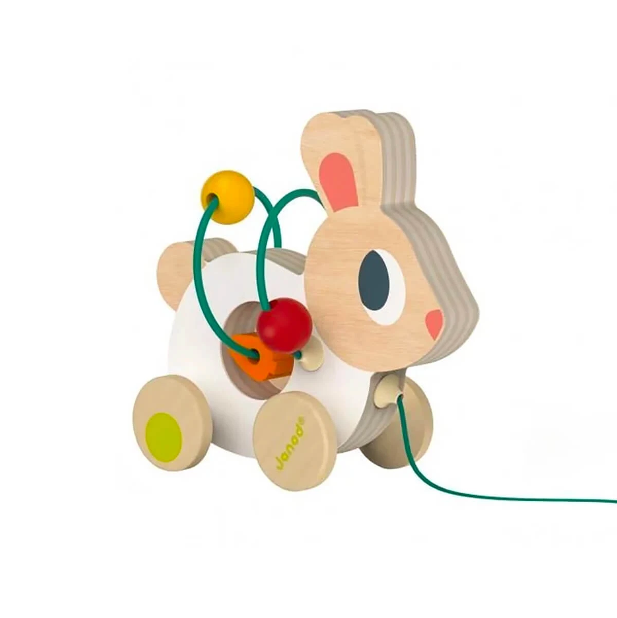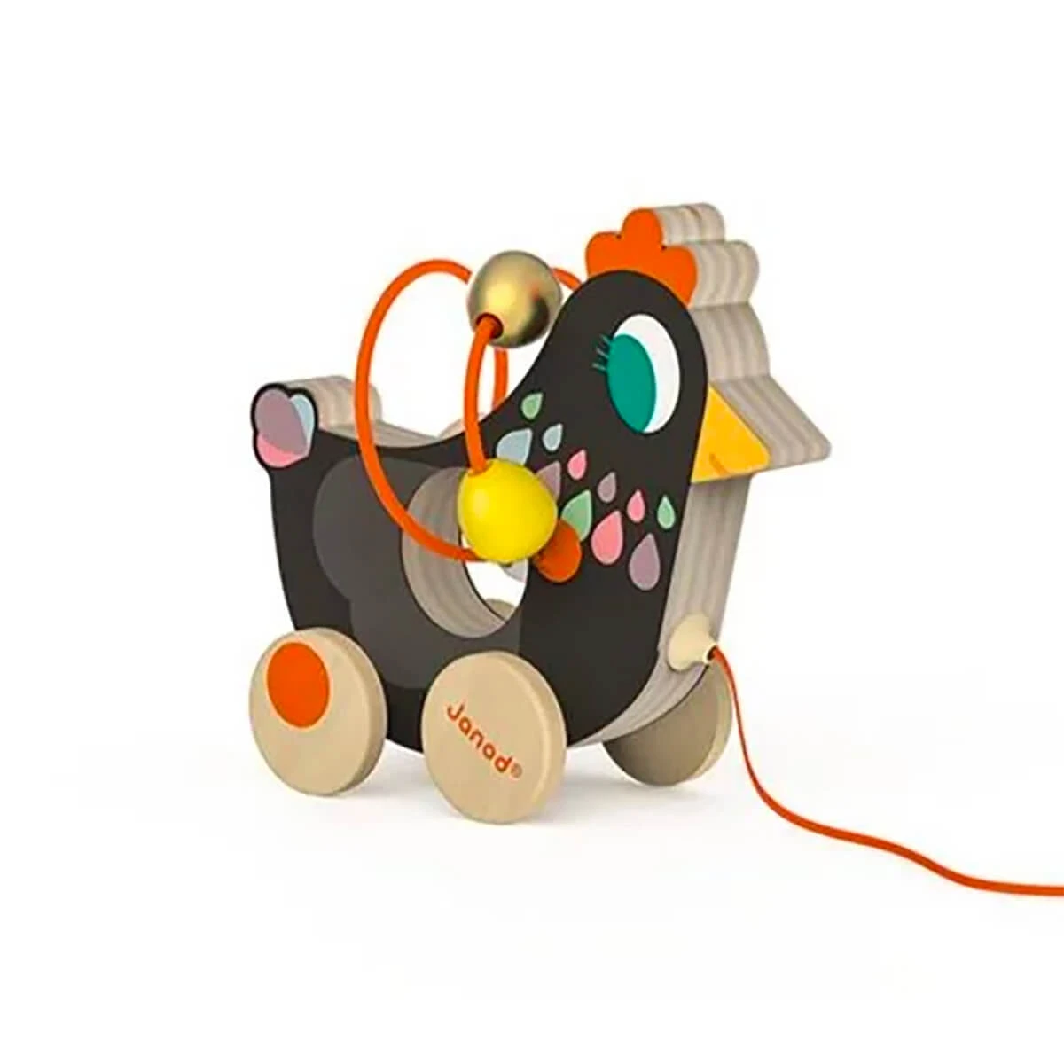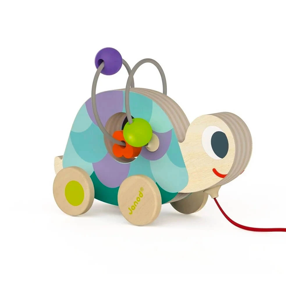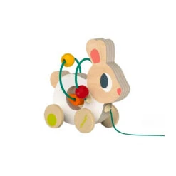 Animals mini looping toy by Janod.  Both a pull along toy and a looping toy makes this a family favourite. Babies get great dexterity, encouraged to explore the room around them by pulling their little friend along and when they need to sit still, they’ll engage with the hoops and beads, stringing them back and forth and working on their fine motor skills. A real favourite for its two in one and a great toy to travel with. Choose from Chickem, Duck, Turtle, Cat and Rabbit. One supplied.