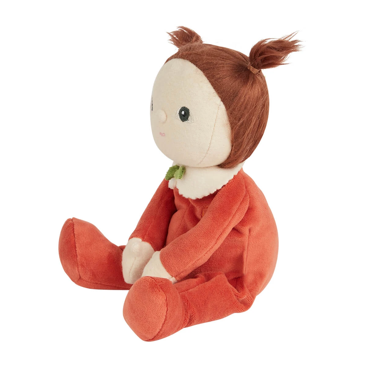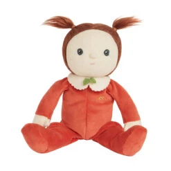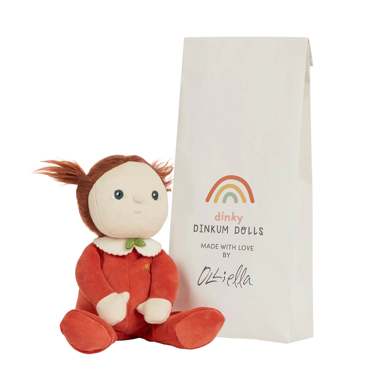 Annie Apple Dinky Dinkums Doll by Olli Ella. Your heart will melt when you hold them, as they snuggle floppily into the palm of your hand. Say hello to Annie Apple! A limited-edition palm-sized playmate, perfectly weighted in all the right places, and outfitted in snuggly plush velvety cotton making Dinky Dinkums the smallest, sweetest snuggle companion.