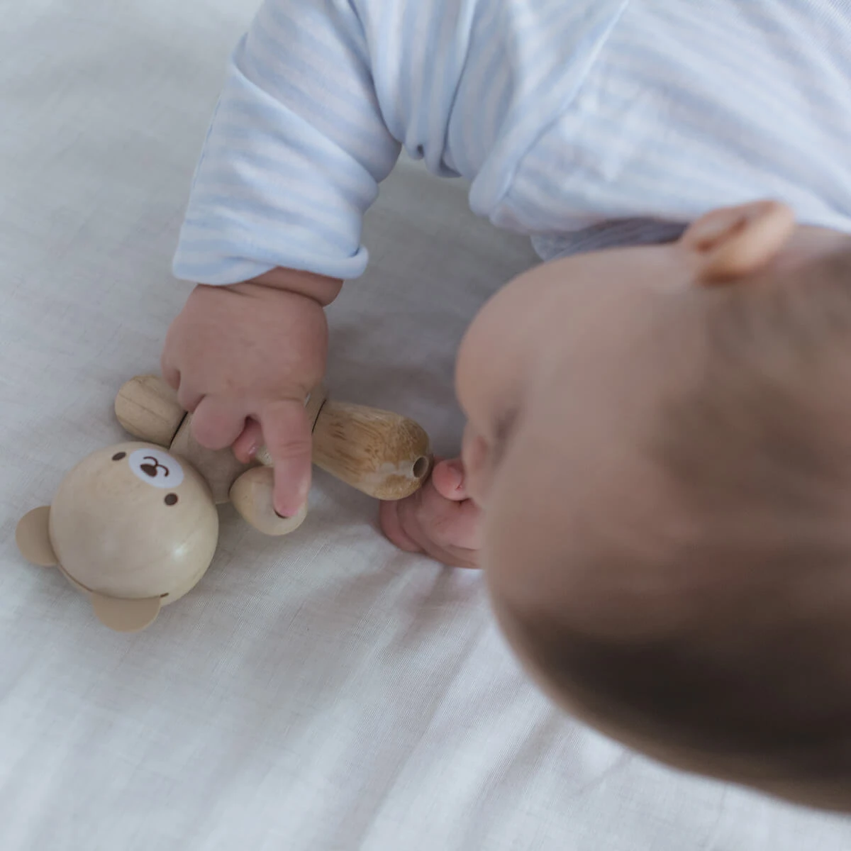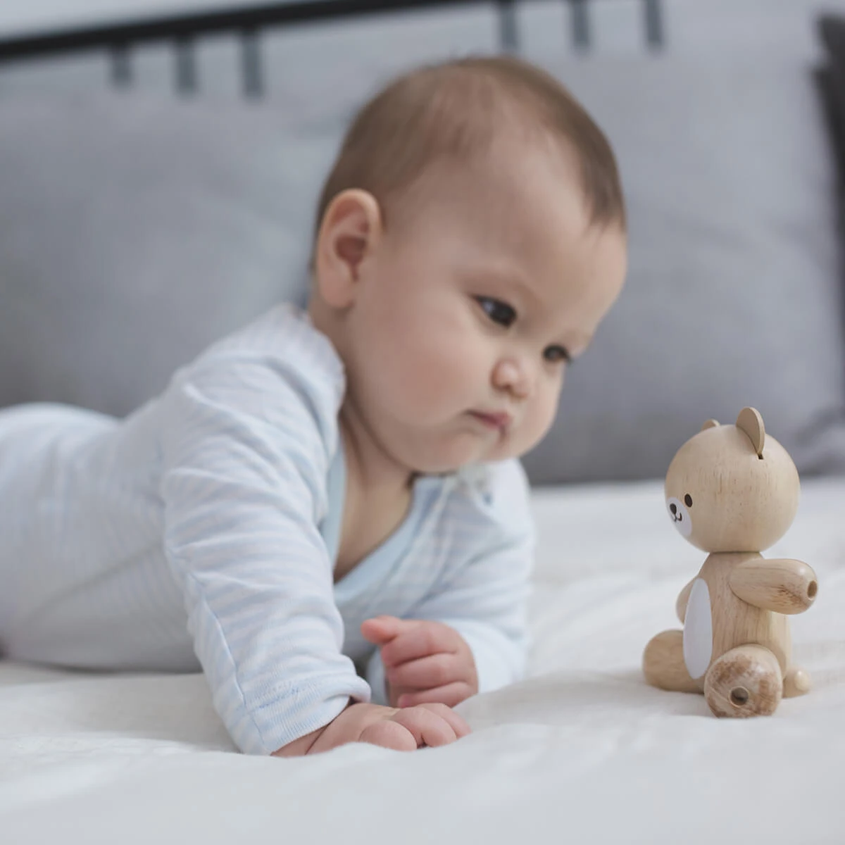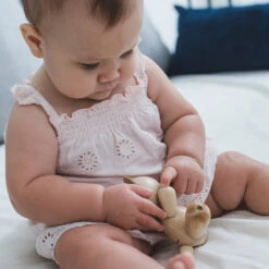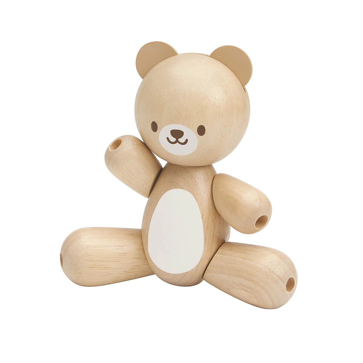 Wooden bear by PlanToys. This Bear can be a new friend for your little ones! Babies can grasp, hold and talk to the Bear. The arms and legs are movable. Supports development of fine motor and communication skills