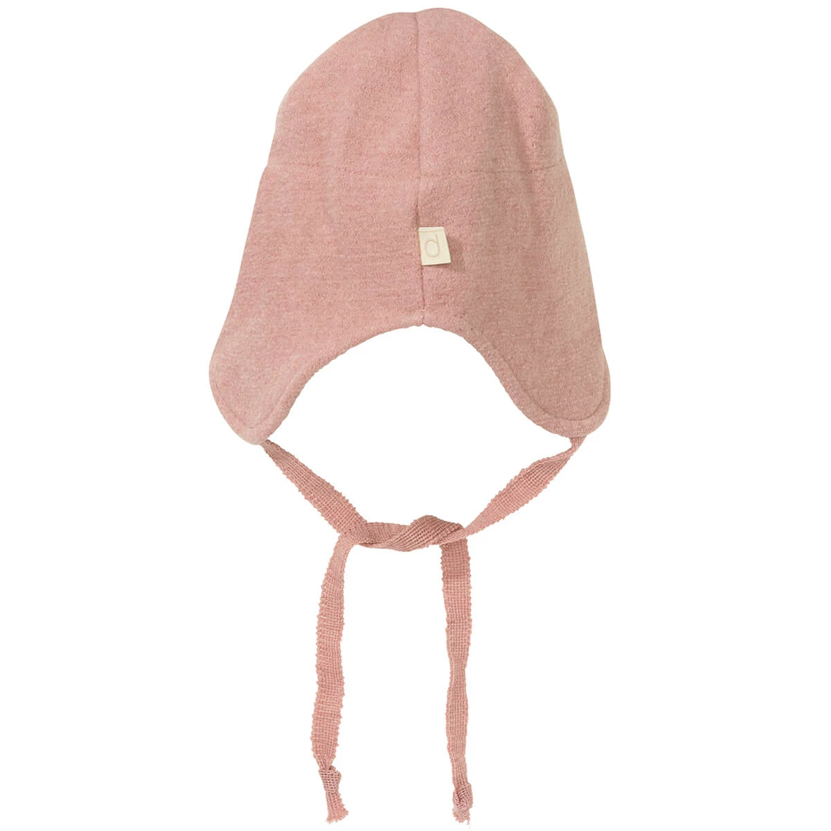 Boiled wool hat by Disana.  The Disana boiled wool hat has a particular low cut and completely covers the ears and cheeks, keeping ears warm and toasty whilst keeping the eyes free to see. The unique fit secures a perfect grip. The outside is completely made of wind and weatherproof boiled wool. The lining is made of particularly soft organic cotton. Two ties make sure that the hat won’t get out of place, even when romping in the snow.