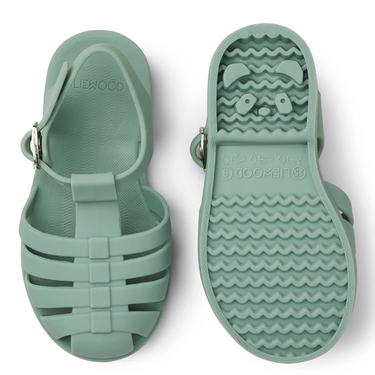 Bre sandals by Liewood. A perfect summer sandal for a day of fun! They are super flexible and sure to be a favourite throughout the summer. Little ones will love to walk around in the sandals, as the soles leave cute panda shaped footprints on any soft surface. With a metallic (nickel free) adjustable buckle and with a press button making them easy to open and close. Super practical as they are easy to clean.