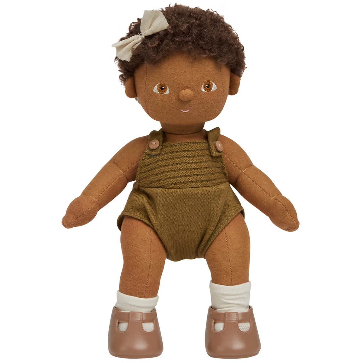 Button Dinkums doll by Olli Ella. Step into a world of love and wonder with the marvellous Dinkum Dolls! Our new friends are ready for endless adventures — snuggle them, dress them up, and style their hair! With posable arms, legs, and head, these Dolls can even sit and stand tall when wearing their shoes.