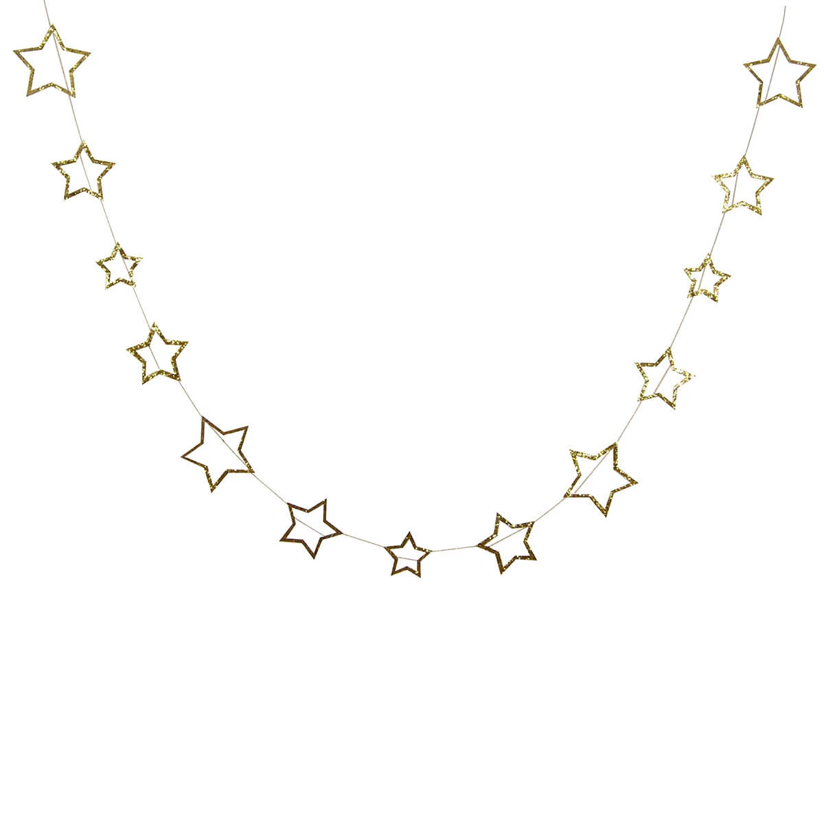 Chunky glitter stars mini garland by Meri Meri. Â Features an array of star-shaped pennants all coated with chunky gold glitter and metallic cord, the garland is perfect for any celebration.