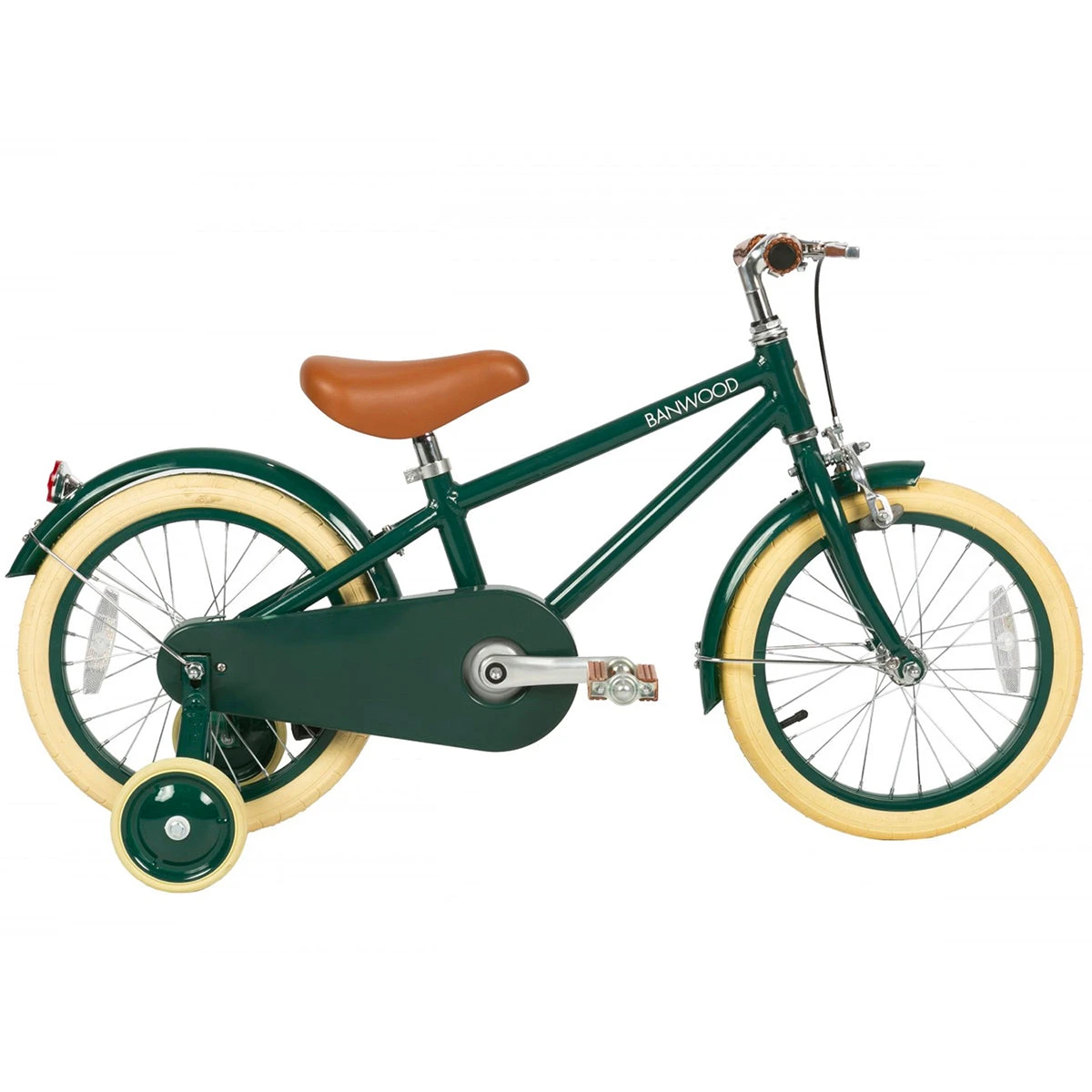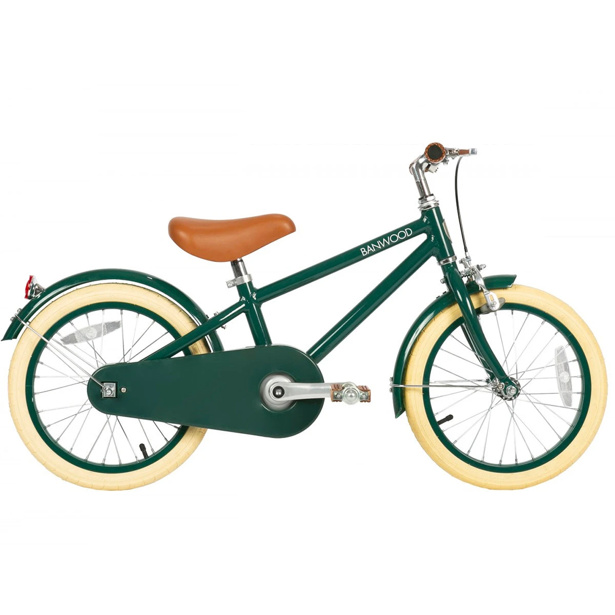 - Banwood brown faux leather saddle and grips in matching colour.
