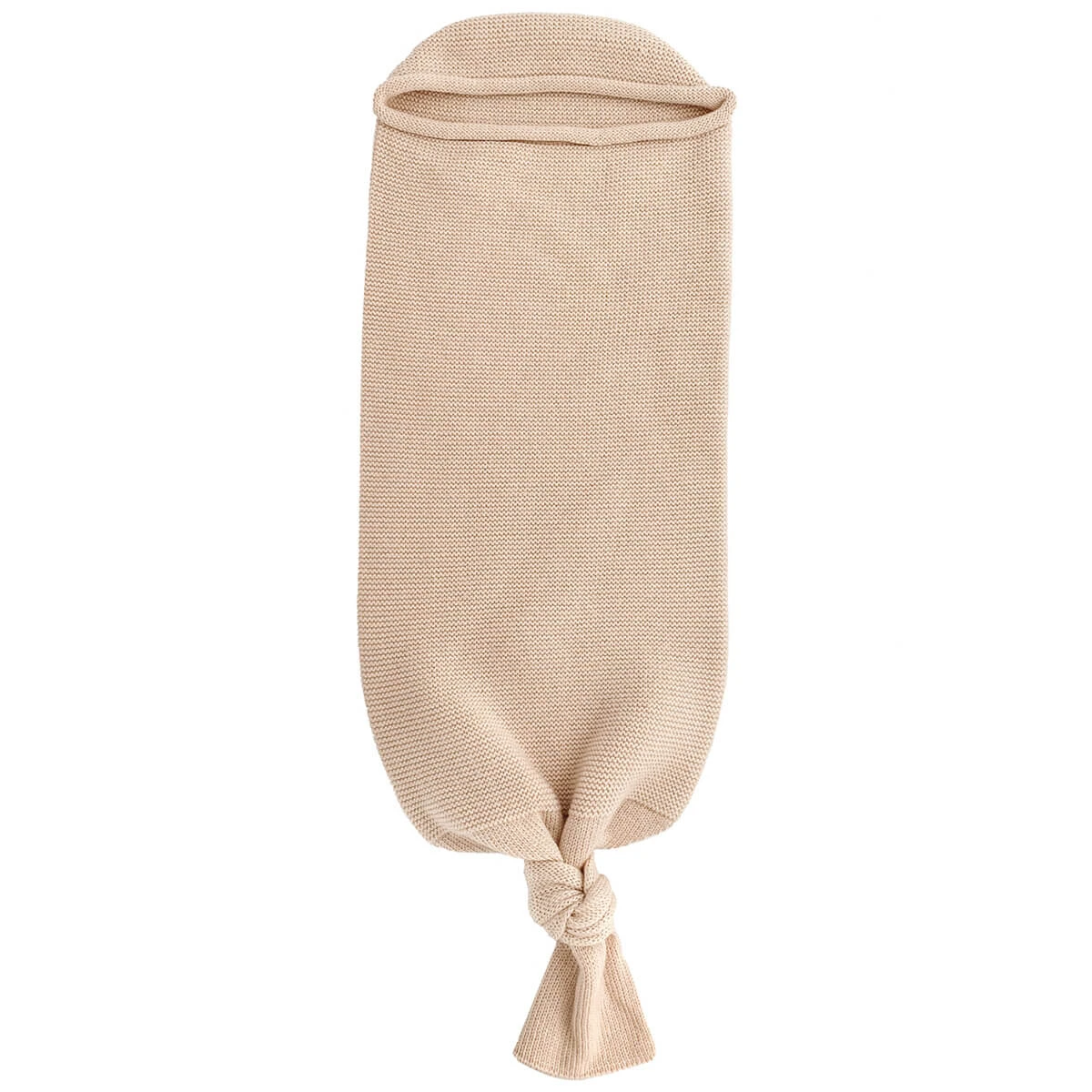 Cocoon in oat by Hvid. Wrap your little one in this gorgeous knitted cocoon. The cocoon works similar to a swaddle making baby feel warm and comforted. You can use it with or without the cap on and leave babies arms inside or out.