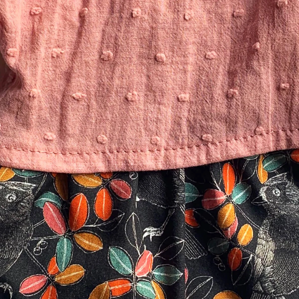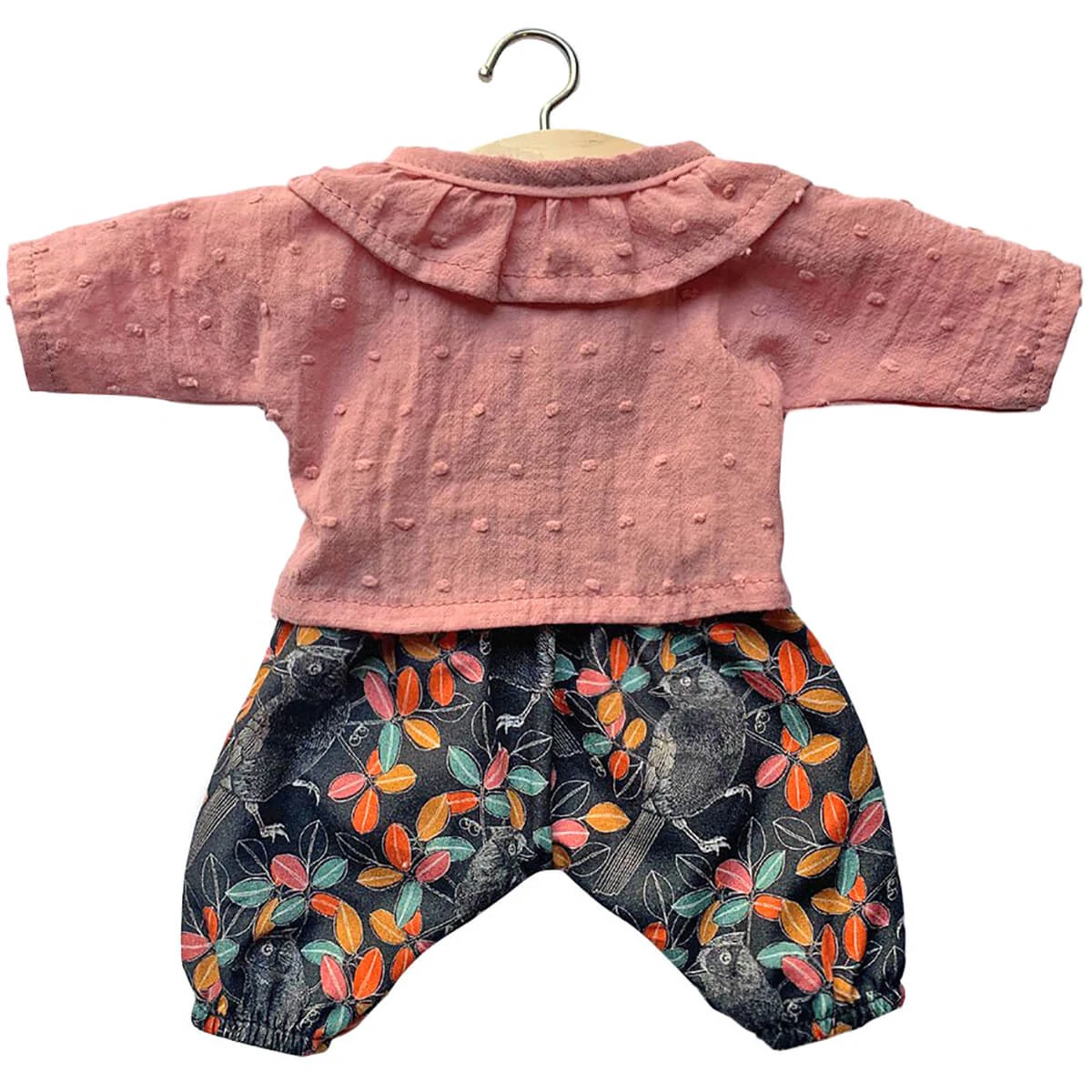 Coline outfit by Minikane.  Beautiful handmade doll’s outfit in double gauze cotton, with a plumeti ruffle blouse and bird print pants. Fits the Paola Reina 34cm Gordi baby dolls.