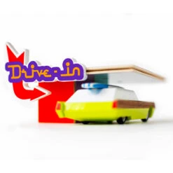Drive In playset by Candylab Toys.  The Drive-In is one of Candylab’s newest additions to take you down down memory lane. The Drive-In is sure to have you thinking back to classic movies and popcorn in the car. Designed to fit any of the 3 car lines: Classics, Juniors, and Candycars.