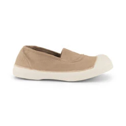 Elastic tennis shoe by Bensimon.  Simple slip-on elasticated front version of the Bensimon tennis shoe. This slip-on style is easy to put on and quick to take off. Thin and lightweight made from rubber and natural cotton. Every shoe is hand-dyed in Bensimon’s workshops in France, meaning every pair has its own variations and is completely unique.