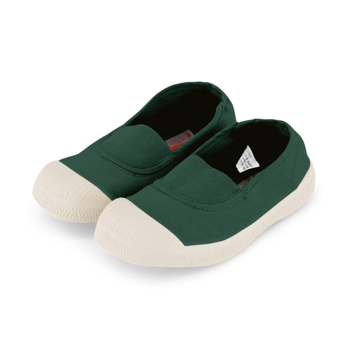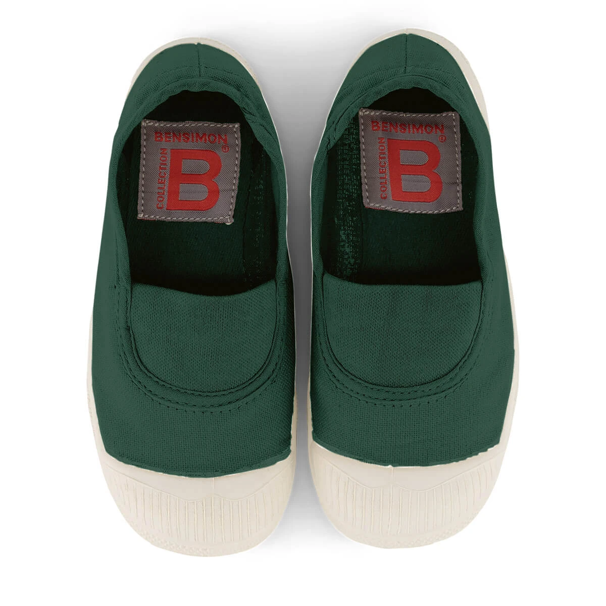 Elastic tennis shoe by Bensimon.  Simple slip-on elasticated front version of the Bensimon tennis shoe. This slip-on style is easy to put on and quick to take off. Thin and lightweight made from rubber and natural cotton. Every shoe is hand-dyed in Bensimon’s workshops in France, meaning every pair has its own variations and is completely unique.