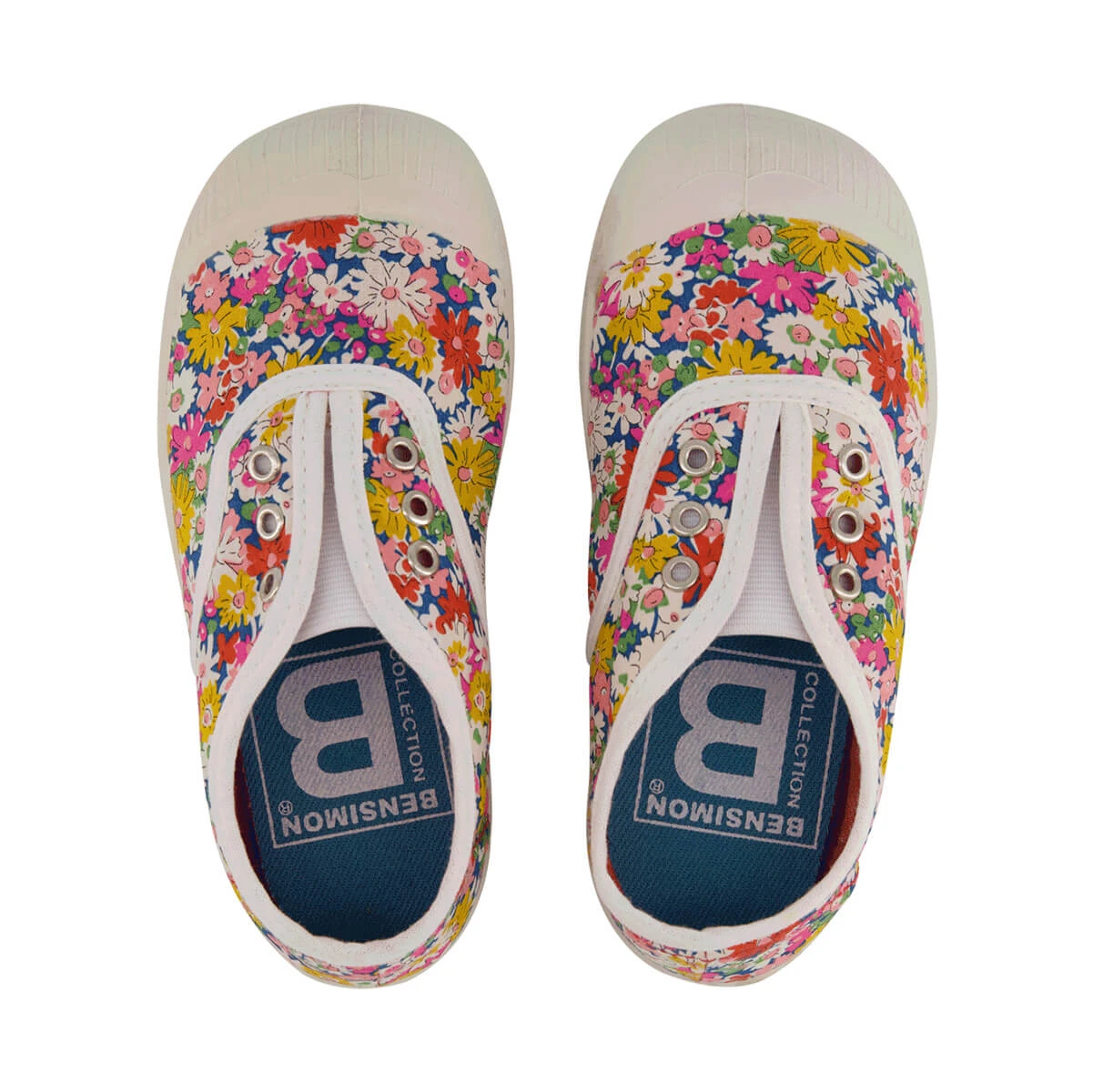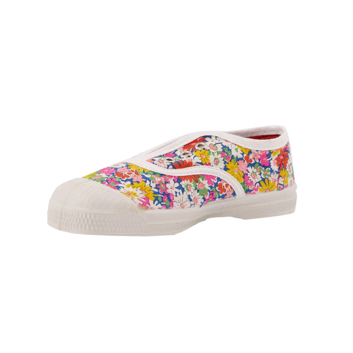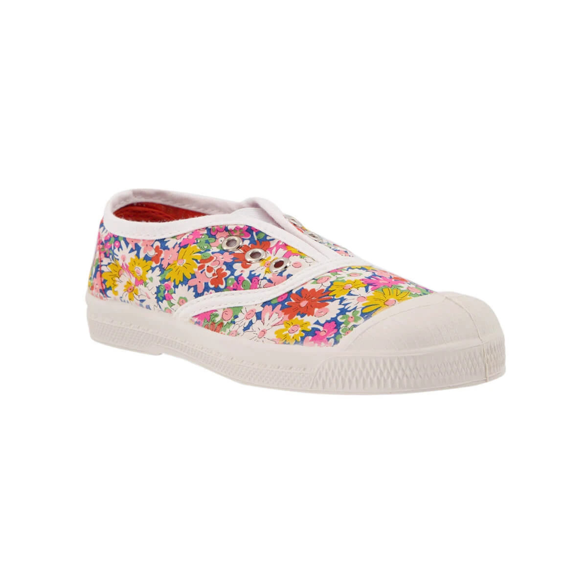 Elly slip on tennis shoe by Bensimon. The original Bensimon laceless tennis shoe with eyelets and elasticated front. This slip-on style is easy to put on and quick to take off. Thin and lightweight made from rubber and natural cotton. Every shoe is hand-dyed in Bensimon’s workshops in France, meaning every pair has its own variations and is completely unique.