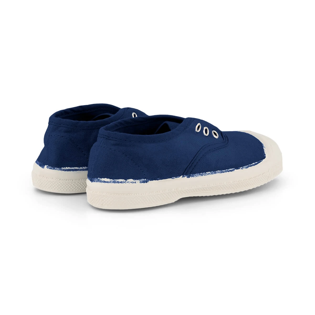Elly slip on tennis shoe by Bensimon.  The original Bensimon laceless tennis shoe with eyelets and elasticated front. This slip-on style is easy to put on and quick to take off. Thin and lightweight made from rubber and natural cotton. Every shoe is hand-dyed in Bensimon’s workshops in France, meaning every pair has its own variations and is completely unique.