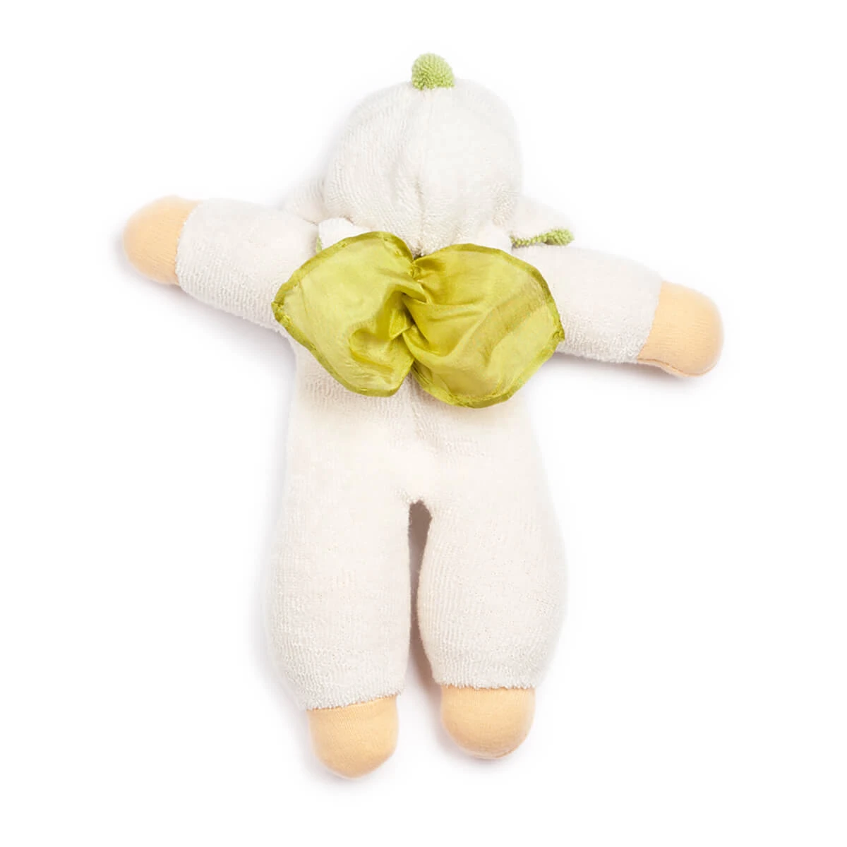 Flower fairy doll by Nanchen Natur. In soft and cuddly organic terry cotton with a little rattle inside, the flower fairy doll is suitable from birth. Handmade in Germany and finished with a hand-painted face, every Nanchen Natur product is unique. Made from organic terry cotton and pure new organic wool filling.