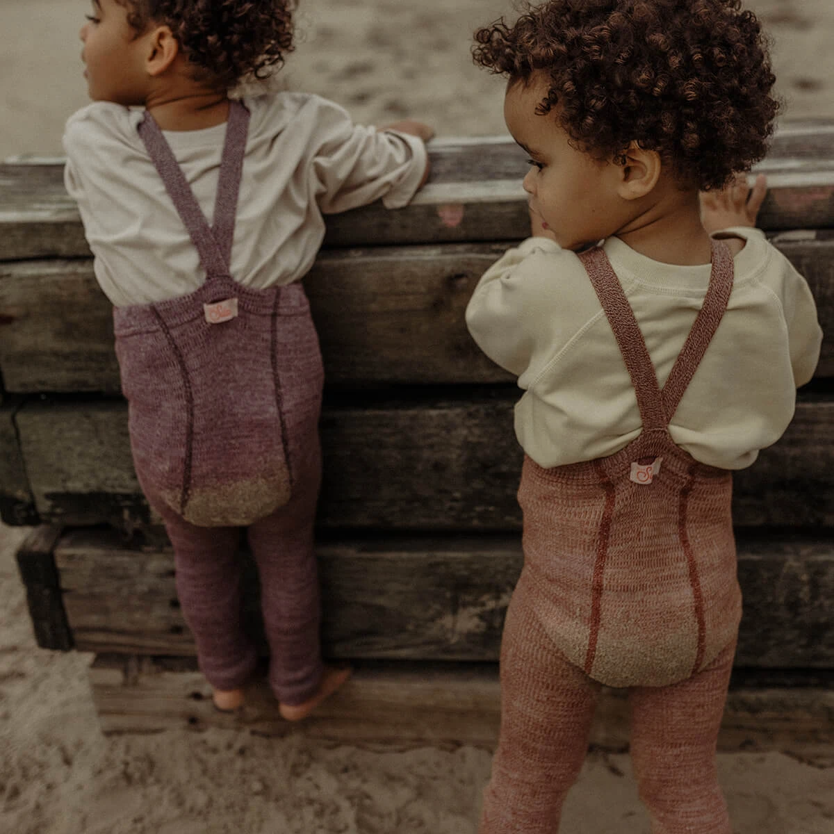 It is important that your little one always wears the tights with braces in the correct way (as shown in all our pictures) with one brace securely placed on the left shoulder and the other brace on the right shoulder in order to avoid abrasions. The braces help little adventurers to freely move while playing and exploring the world and should be always used in the correct position.
