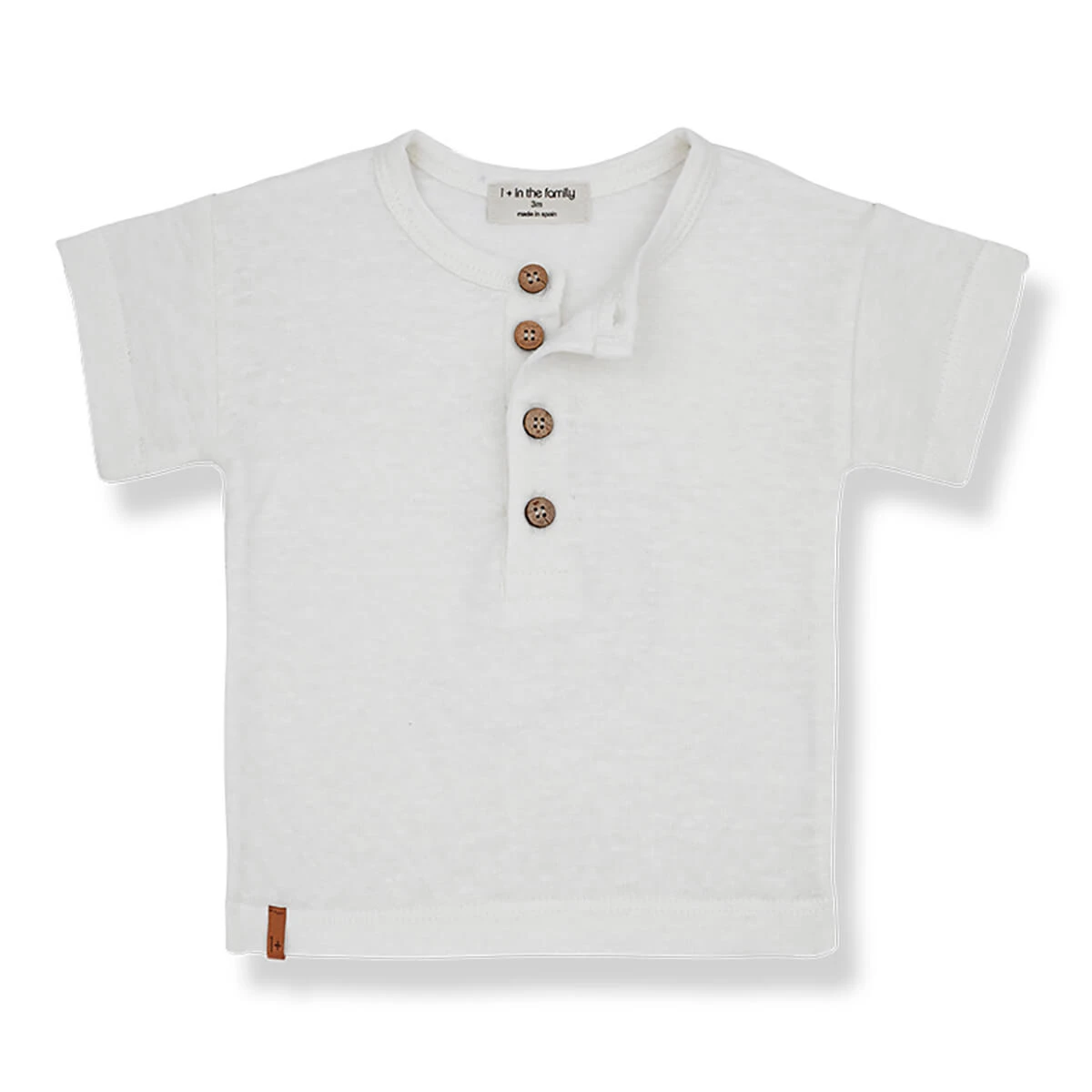 Francis henley T-Shirt by 1+ In The Family. Short sleeve tee with button down fastening at the front.