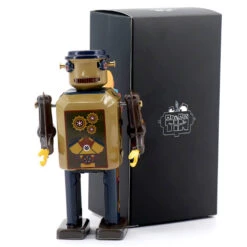 Gearbot limited edition wind up tin robot by Mr & Mrs Tin. Join Gear Bot in his workshop and help him assemble all nuts and bolts!  Wind them up and watch them go!