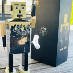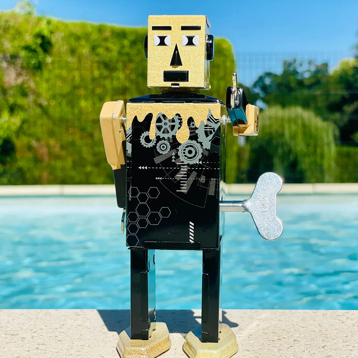 Goldhead Bot limited edition wind up tin robot by Mr & Mrs Tin. Wind them up and watch them go!