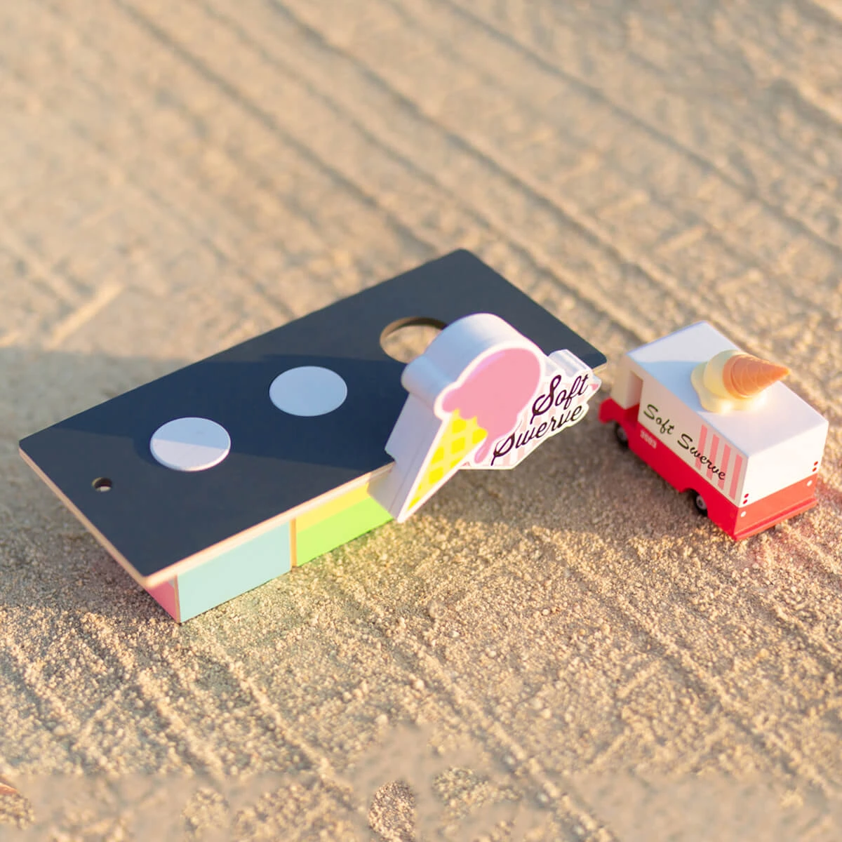 Ice Cream Shack By Candylab Toys. Soft Swerve is expanding into the Roadside Shack Business, perhaps starting a little network of Shacks? Pull up in your tiny CANDYCAR® for some soft serve or a waffle cone deliciousness! The Shack is scaled to work with the CANDYCAR® line. A step-by-step manual is also included to help with setup. No glue or tools are required. Assembly time is measured in seconds.