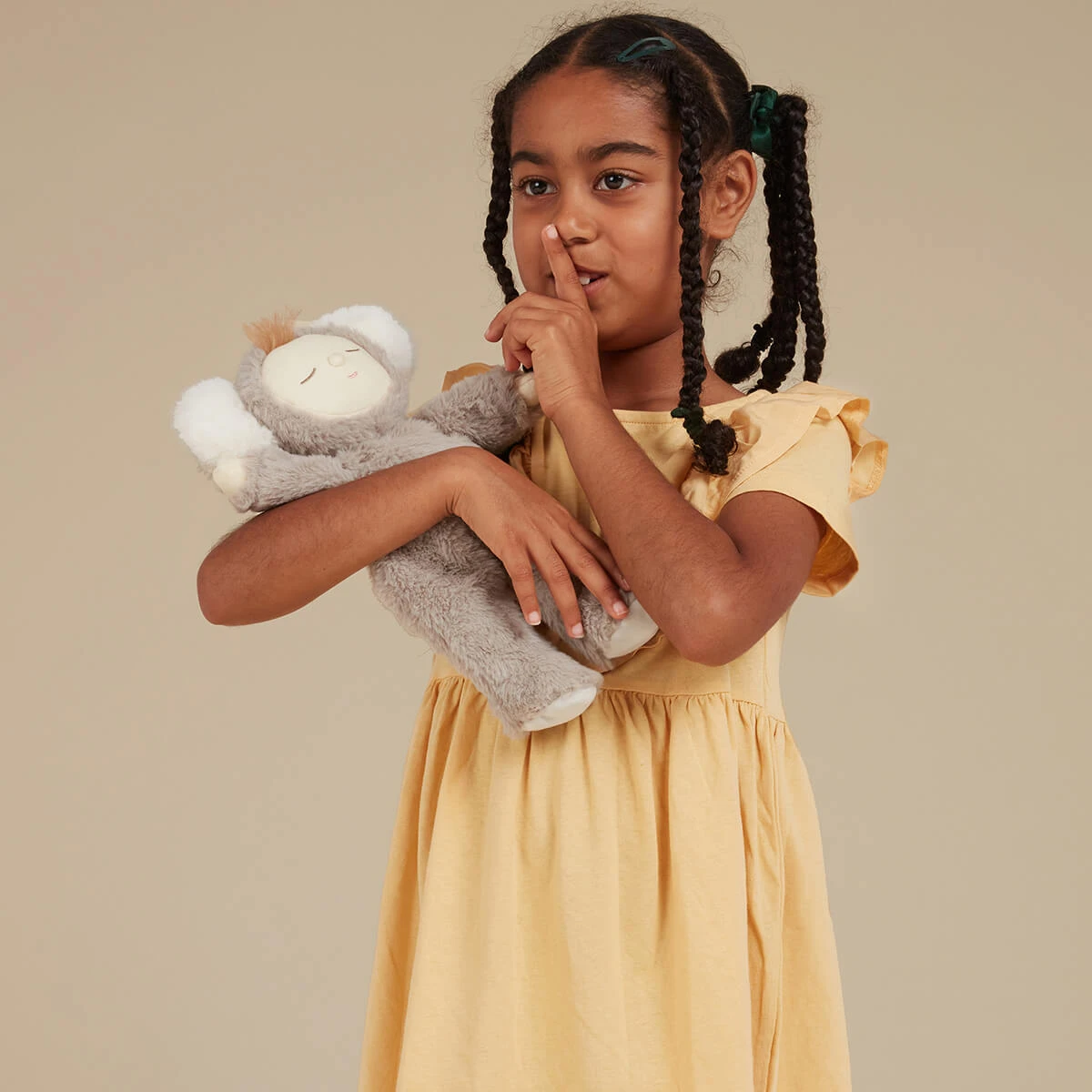 Koala Moppet Cozy Dinkums doll by Olli Ella. Koala Moppet, so cuddly and cute, loves to doze in its soft fluffy suit. Made for snuggles and snoozy days, this velvety little Cozy loves to play! Koala Moppet is poseable, made from the plushest outer and features the sweetest embroidered face with a little tuft of hair. Each Cozy Dinkum wears a non-removable suit with two soft furry ears and a rainbow right over their heart. Koala Moppet is a beautiful gift for newborn babies or would make a lovely addition to your Dinkum Doll family for older kids too.