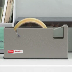 Large tape dispenser by Hightide Penco. Simple, rugged, all-metal construction tape dispenser with a weighty tape holder. Can be mounted onto a wall or used on your desk. A thing of simple, industrial charm.Â