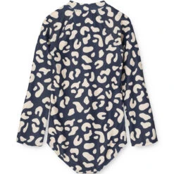 Magali swimsuit by Liewood. Stretchy and fast drying swim suit with a zip front and long sleeves and high collar to protect the neck from the sun. The fabric protects against the suns UV rays with the highest ultraviolet protection factor, UPF 40+.