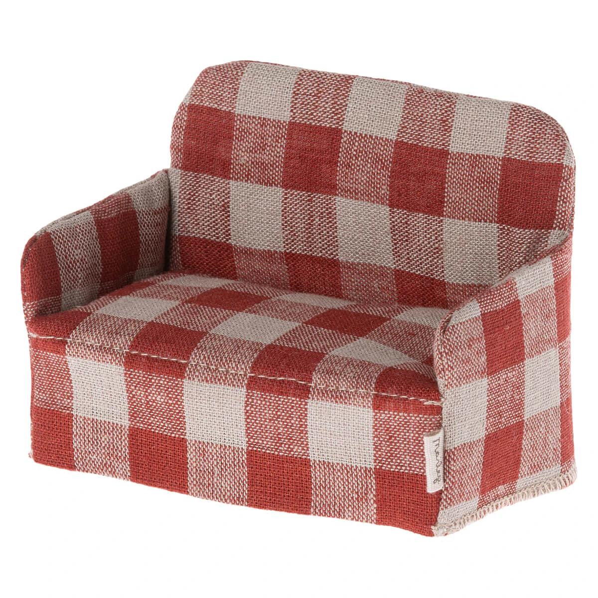 Mouse couch by Maileg.  A perfect place for your small Maileg friends to take a rest. It fits nicely into the Maileg Gingerbread House. The couch is delivered flat packed and is easy to fold and assemble.