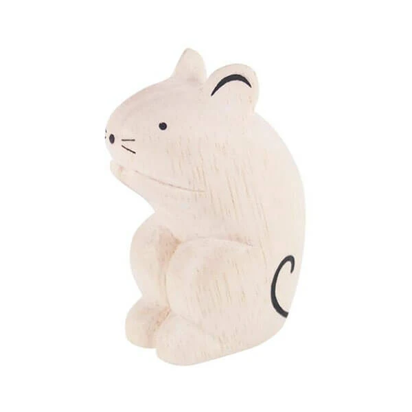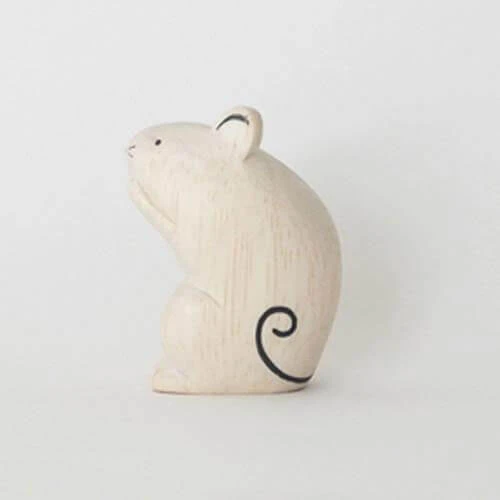 Mouse Polepole wooden animal designed and created in Japan by T-Lab. Â Hand-crafted in Indonesia, each Polepole animal is skillfully carved by hand out of an incredibly soft, light sustainable wood called albizia, grown on T-Lab’s own farms in Indonesia. Â The wood is then carefully sanded to create a super smooth surface and finally hand painted and finished in Japan with the sweetest expressions and patterns. Â