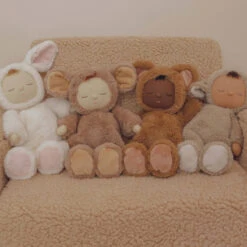 Mousy Pickle Cozy Dinkums doll by Olli Ella. Mousy Pickle, so cuddly and cute, loves to doze in its soft fluffy suit. Made for snuggles and snoozy days, this velvety little Cozy loves to play! Mousy Pickle is poseable, made from the plushest outer and features the sweetest embroidered face with a little tuft of hair. Each Cozy Dinkum wears a non-removable suit with two soft furry ears and a rainbow right over their heart. Mousy Pickle is a beautiful gift for newborn babies or would make a lovely addition to your Dinkum Doll family for older kids too.
