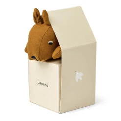 Myra kangaroo soft toy by Liewood.  A soft and cute cotton / linen soft toy. The fabric has a stonewashed treatment for a soft and classy look. Complete with a soft rattle inside.