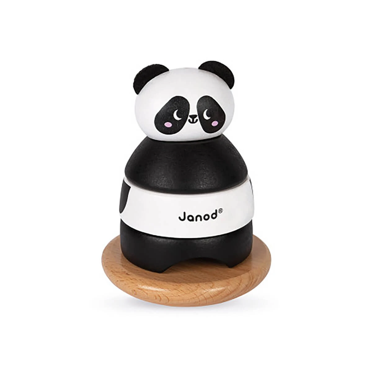 Panda stacker and rocker by Janod. A nice little panda to recompose by stacking the different wooden pieces to get a nice tumble. The small ears are made of felt.