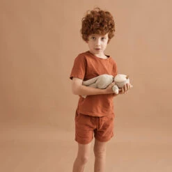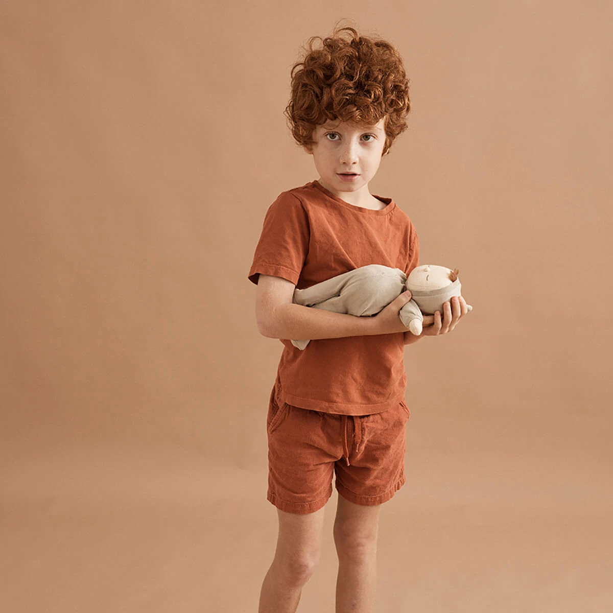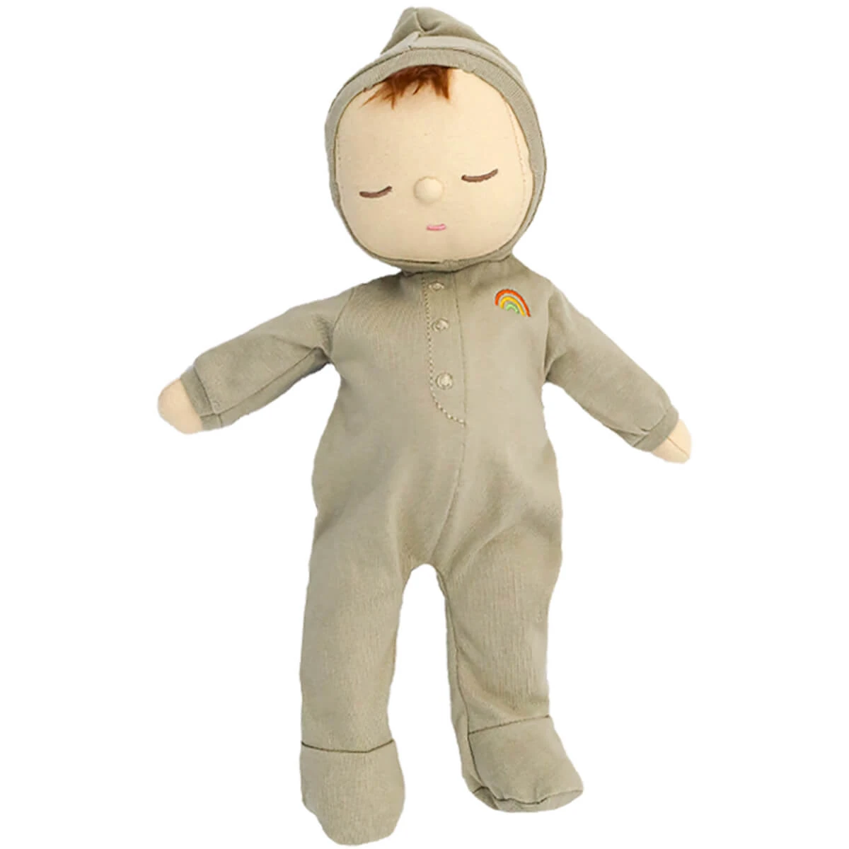 Pickle Dozy Dinkums doll by Olli Ella. Your baby’s first baby and lifelong friend with the perfect amount of squish for cuddles and play. Like all the Dozy Dinkums, Pickle is poseable, made from the softest cotton outer, and is the perfect first toy and keepsake. Pickle features the sweetest embroidered face with a tuft of hair and wears a non-removeable onesie with a rainbow over the heart. Pip is a beautiful gift for newborn babies or would make a beautiful addition to your Dinkum Doll family for older kids too.