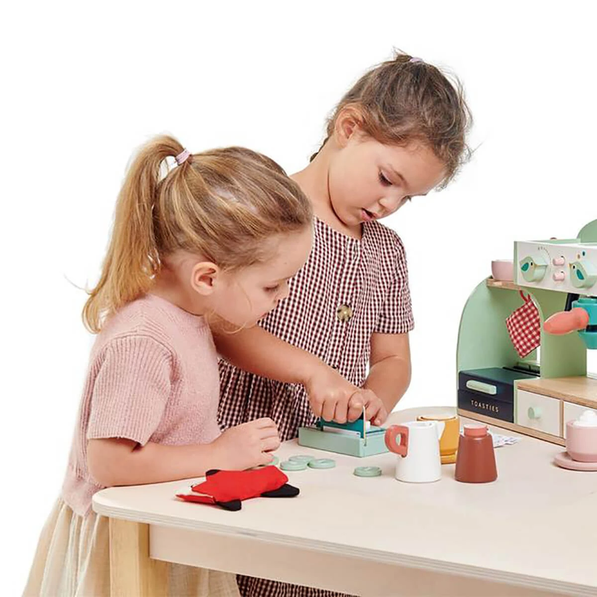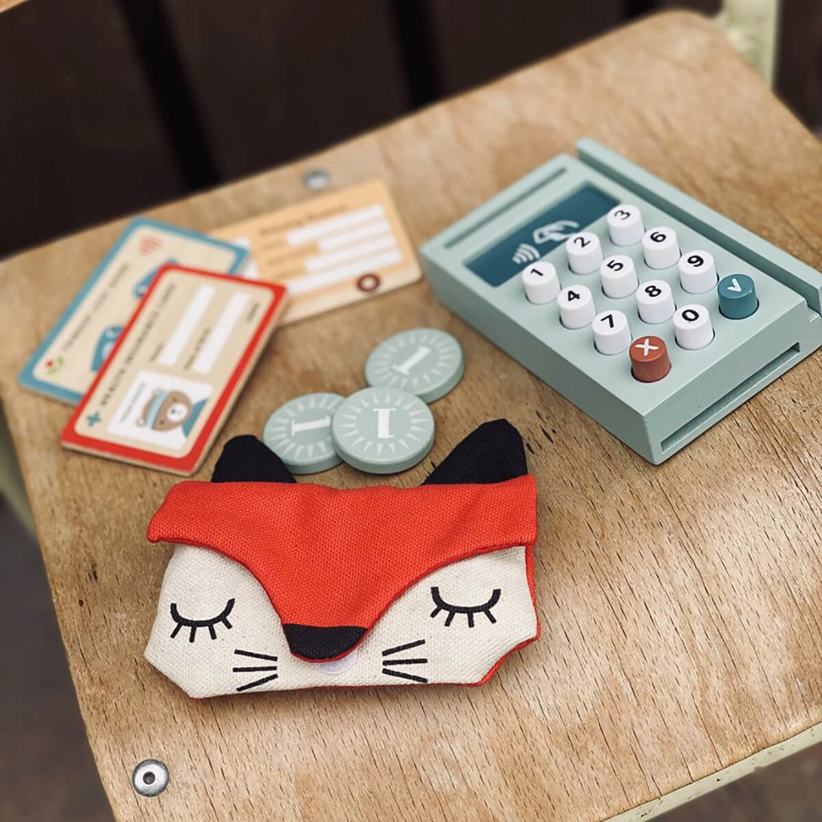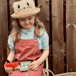 Play Pay Pack by Tender Leaf Toys. A realistic and fun pretend play money and card reader set for children. The set includes a card reader with squishy number buttons, a slot to use the Tender Leaf credit card and a top slot to place one of the five differently illustrated till receipts. A canvas purse holds a health card and ID card illustrated both sides with space to write a name or stick a photo. Also includes 6 sheets of paper money and 5 coins. A perfect addition to your child’s coffee shop or market, and a helpful way to learn about addition and money.