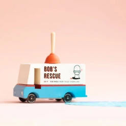 Plumbing van by candylab toys.  Need to unclog a drain or toilet? Never fear, Bob’s Plumbing Van is here! Bob’s Plumbing Van is complete with a rubber plunger, there is no toilet they can’t take on.