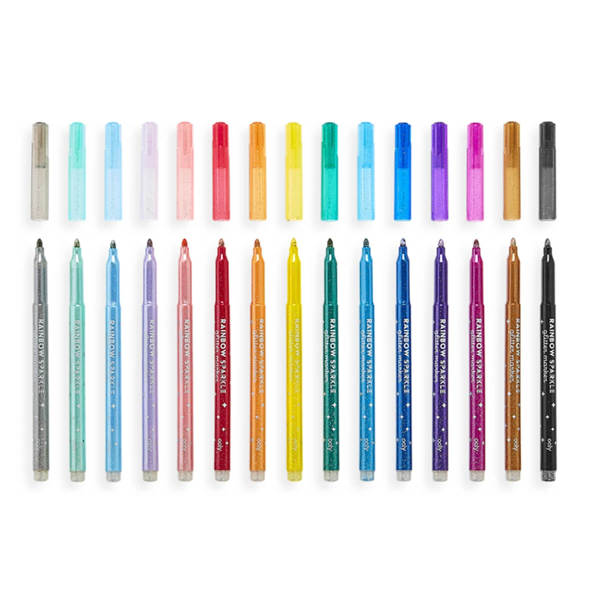 Set of 15 colour glitter marker pens by Ooly.  Add a colourful twinkle to art projects, school projects, thank-you notes and cards. These glitter markers are perfect for adding that special look to your planner or journals too! This set contains 10 classic colour glitter markers as well as 5 popular pastel colour glitter markers giving you more choices and more creative possibilities!