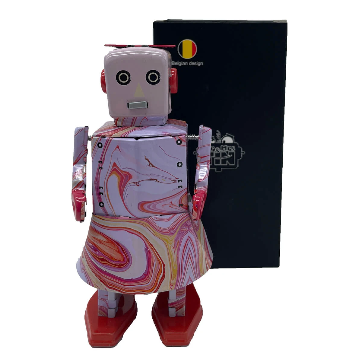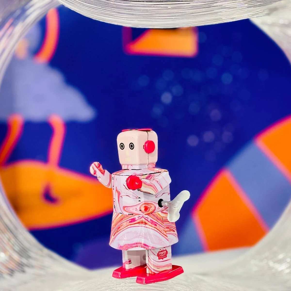 Ripple Bot limited edition wind up tin robot by Mr & Mrs Tin. Ripple Bot just loves la-vie-en-rose!