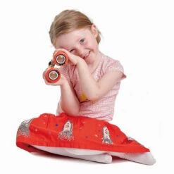 Safari Binoculars by Tender Leaf Toys.  Two big eyes looking at you! Solid wood binoculars with kaleidoscope lenses. These binoculars can be adjusted like real ones to alter the width of your eyes. This is a perfect little gift for that inquisitive little one seeking hours of fun in the garden!