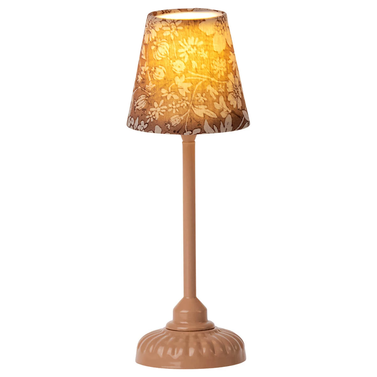 Small vintage Floor Lamp in dark powder by Maileg. The beautiful Maileg vintage floor lamp is a must-have. The lamp will light up the room with a soft tone – remember to turn off the light when our friends go to bed. Fits the Maileg Castle perfectly.