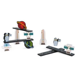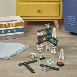 Space balancing and building game by Janod. Houston, we have a (nice) problem! The astronauts, satellites and rockets are all aiming to fly as high as possible in space – and to stay perfectly balanced at the same time! This beautiful wooden game of skill is great for children aged 2 and over. They’ll need to show skill and logical thinking to work out which of the colourful pieces can fly highest without everything falling down. This game consists of 36 colourful pieces that can also be turned into characters for intergalactic stories! The set is composed of 5 astronauts, 5 satellites, 4 rockets, 5 planets, 5 UFOs and 12 anti-gravity planks to stack!