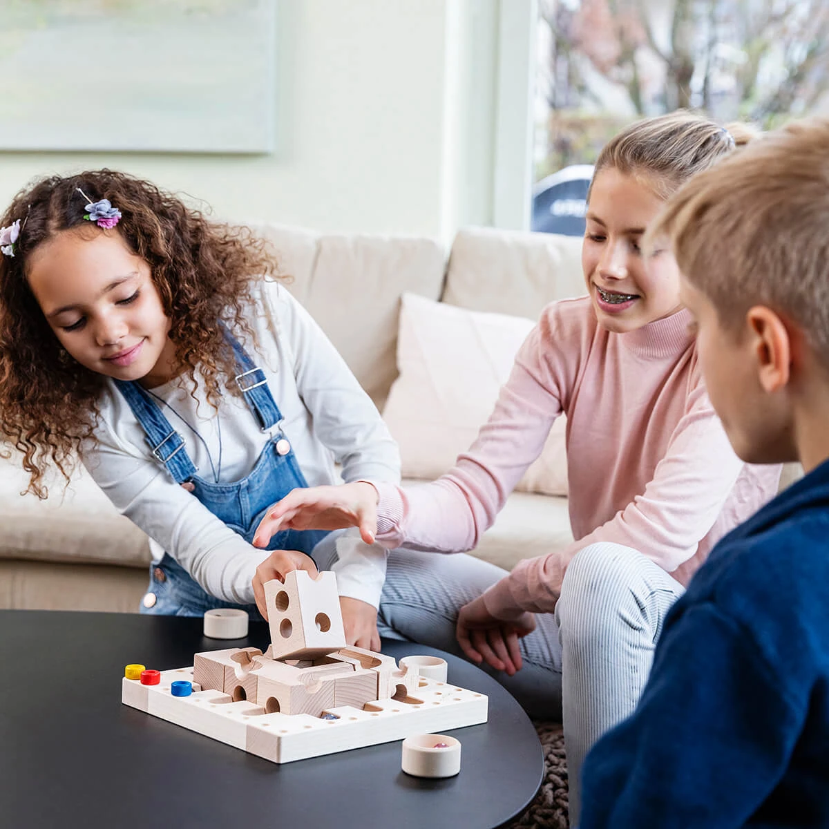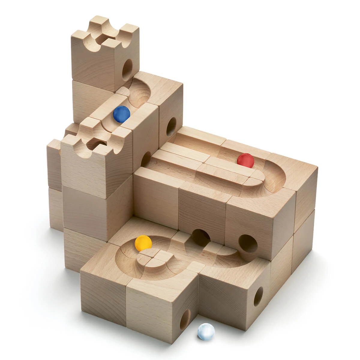 The Cuboro marble run system from Switzerland has been inspiring generations worldwide since 1986. Made from high quality and sustainable Swiss beech wood, the marble run system consists of over 100 different Cuboro elements with various functions. Through creative combinations and logical planning, you can create an infinite number of marble runs.