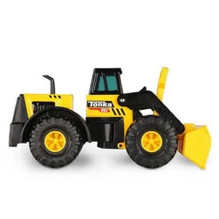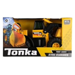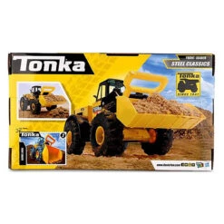 Steel Classics front loader by Tonka. Tonka tough and built to last, this classic Tonka front loader has a steel cab and movable steel digger. In trademark Tonka yellow with big sturdy wheels, this is a digger which will withstand hours of play. Built to take on the toughest construction jobs, move the front loader up and down to transport dirt, rocks or sand from one job site to another. This Tonka toy digger is great for providing imaginative fun as kids fill the truck up with dirt or drive it through a dirt mound. Helps to develop fine motor skills and dexterity.