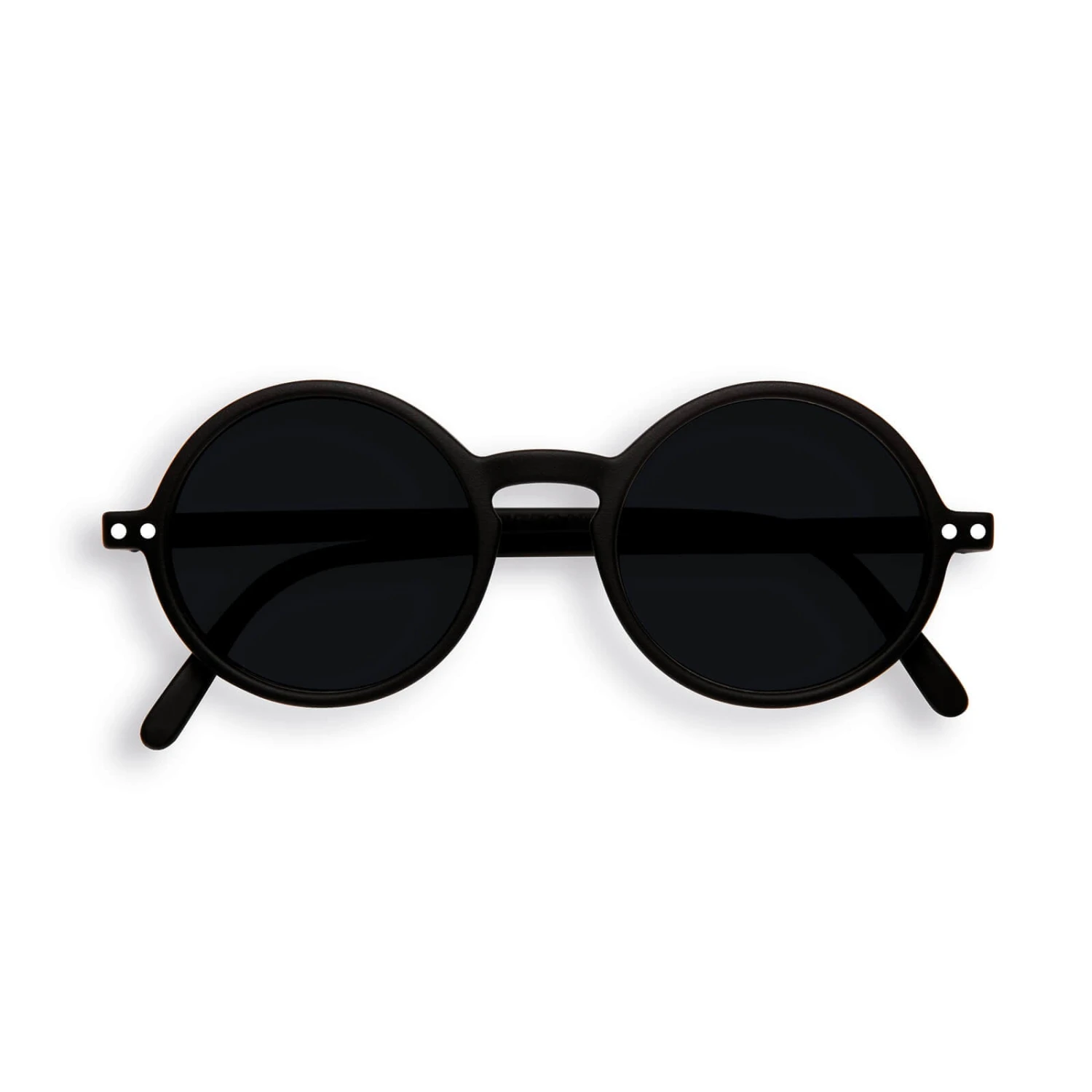 Sun Junior sunglasses style #G (the round) by Izipizi. Protects your child’s eyes on every occasion, for daily life in town or outdoor activities in summer and winter.  100% UV category 3 protection.  Flexible and comfortable arms with spring hinges which adapt to all face shapes and sizes.  A storage pouch is included in the box.