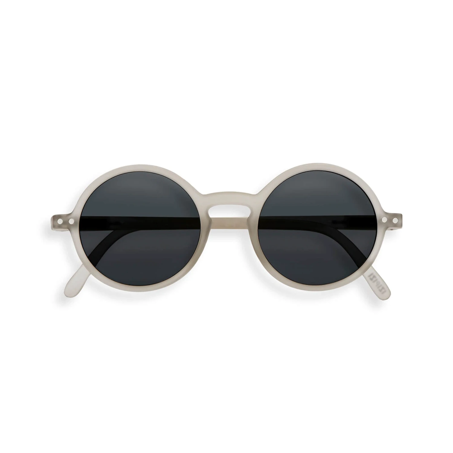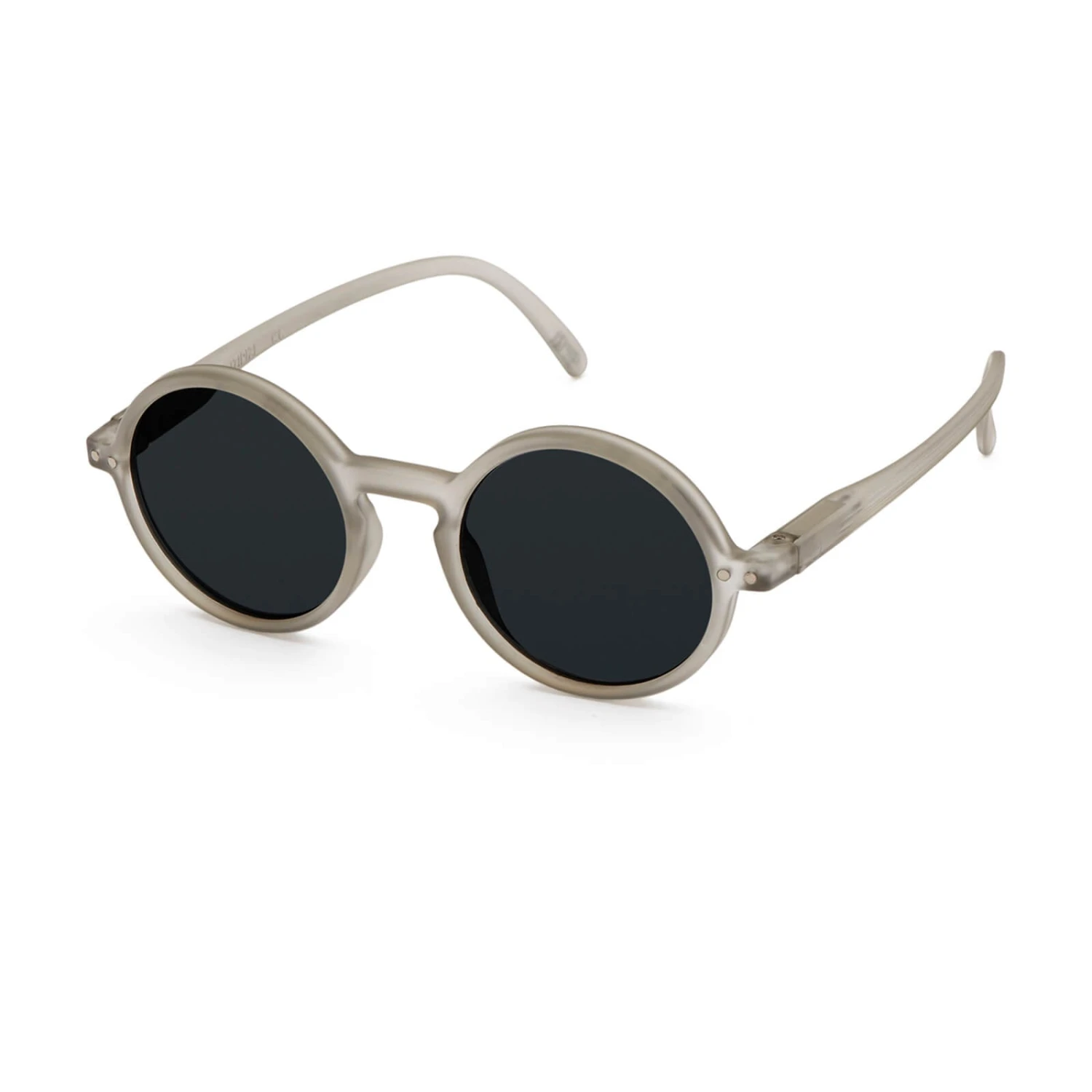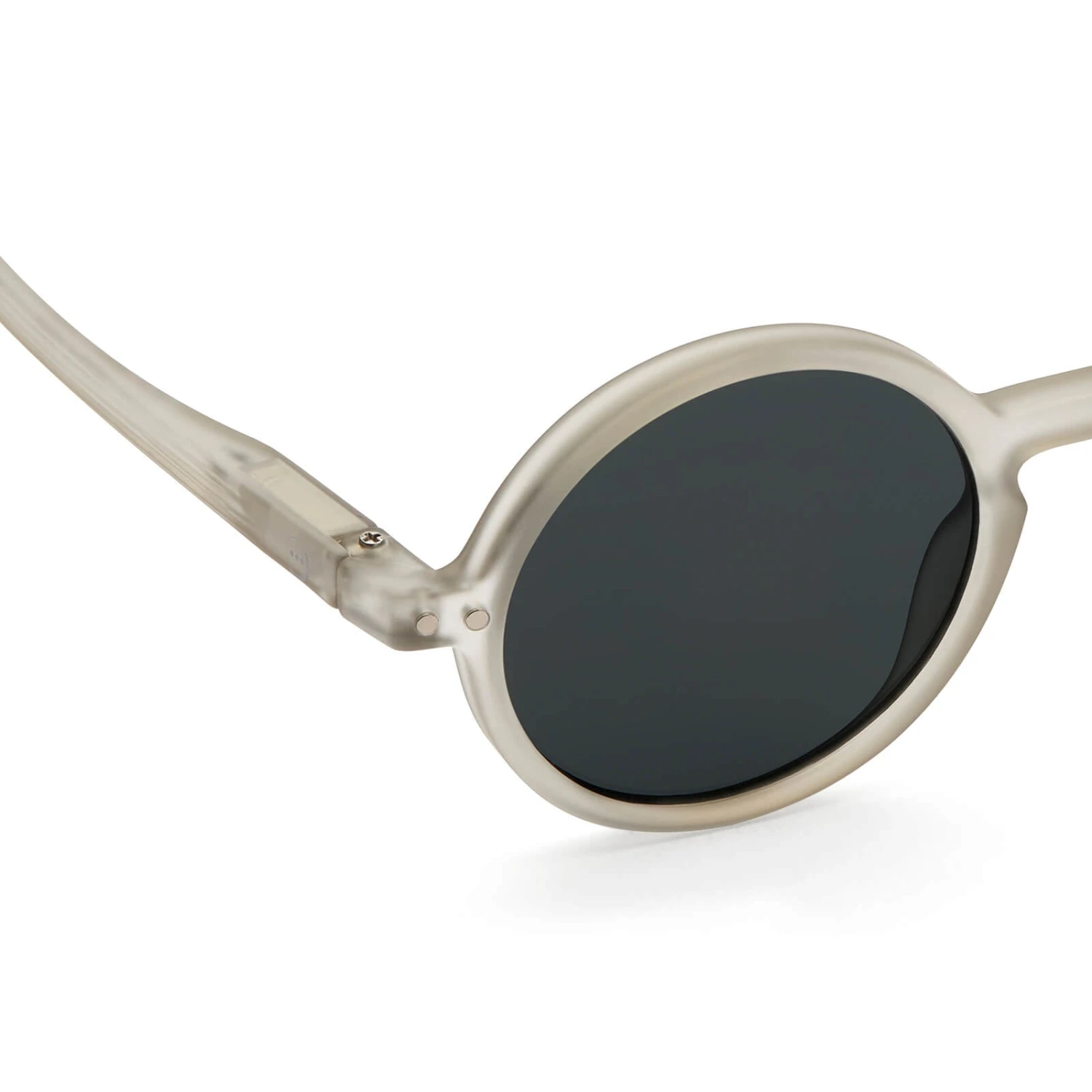 Sun Junior sunglasses style #G (the round) by Izipizi. Protects your child’s eyes on every occasion, for daily life in town or outdoor activities in summer and winter.  100% UV category 3 protection.  Flexible and comfortable arms with spring hinges which adapt to all face shapes and sizes.  A storage pouch is included in the box.
