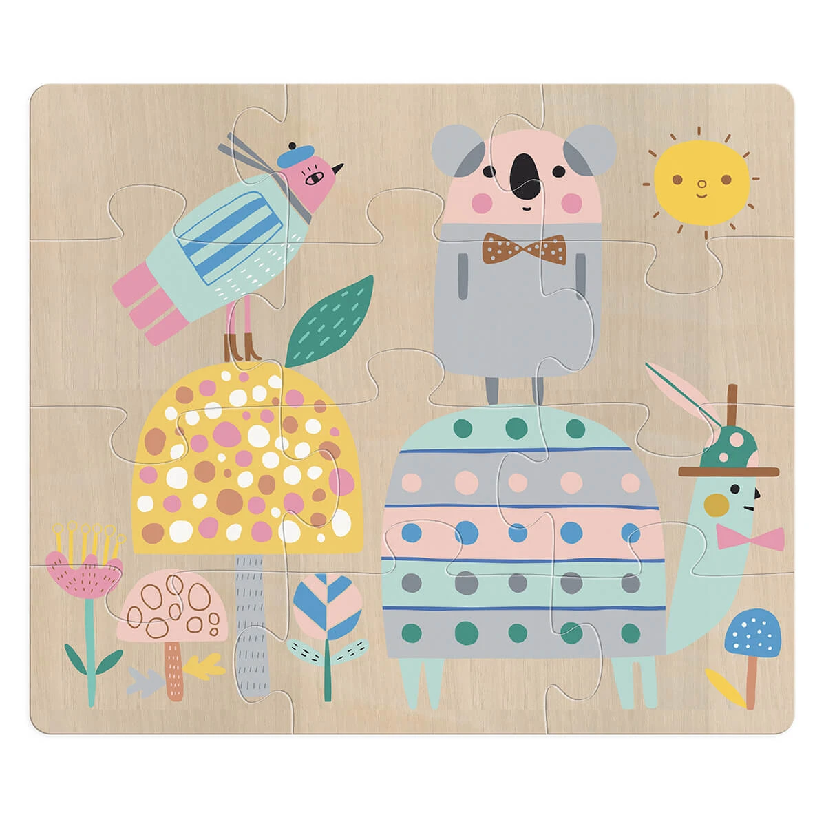 Set of four piece wooden jigsaw puzzles by Vilac, with illustrations from Suzy Ulman.  6, 9, 12 and 16 piece wooden puzzles. Beautifully designed by specialist French toymakers Vilac, who have been producing timeless heirloom toys since 1911.
