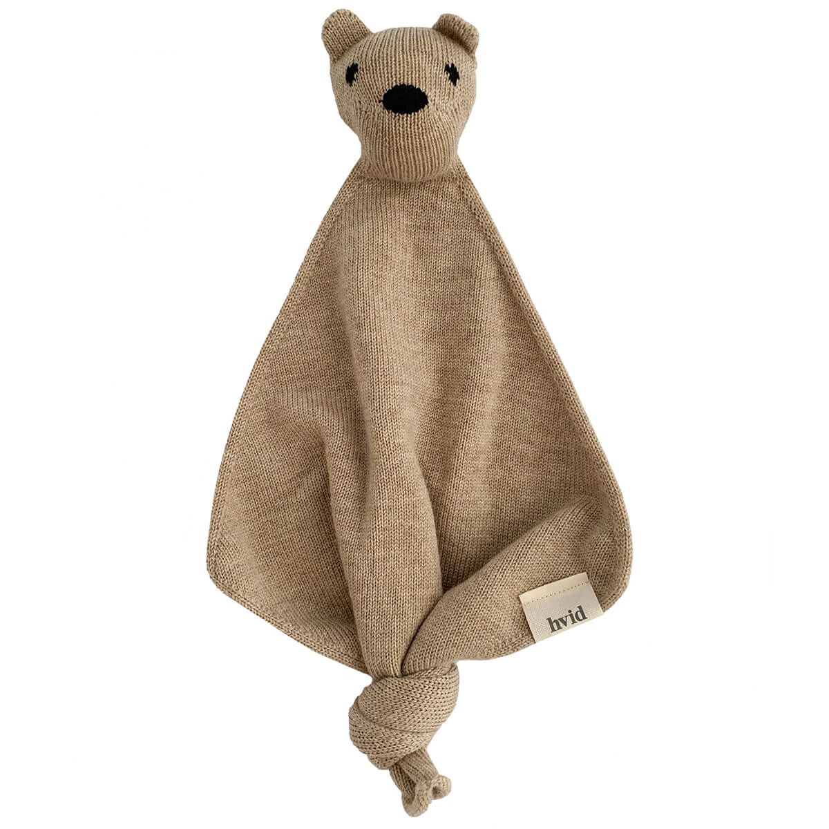 Teddy Tokki in sand by Hvid. A super soft teddybear, perfect for your newborn, or toddler. Made from merino wool, a breathable fabric which is also known to take the scent of your baby and creates peace and trust.  Every Teddy is finished by hand.