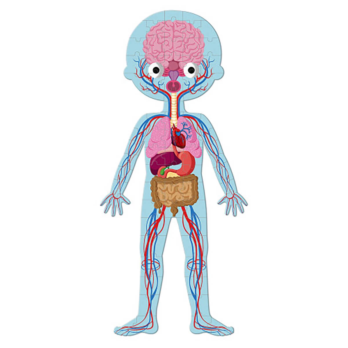 The human body educational jigsaw puzzle set by Janod. This set of 4 giant educational puzzles will allow your child to discover the human body. The box contains: 1 puzzle recto-verso of 50 pieces girl/boy, 1 puzzle of 75 pieces representing the organs and 1 phosphorescent puzzle of 100 pieces representing the skeleton.